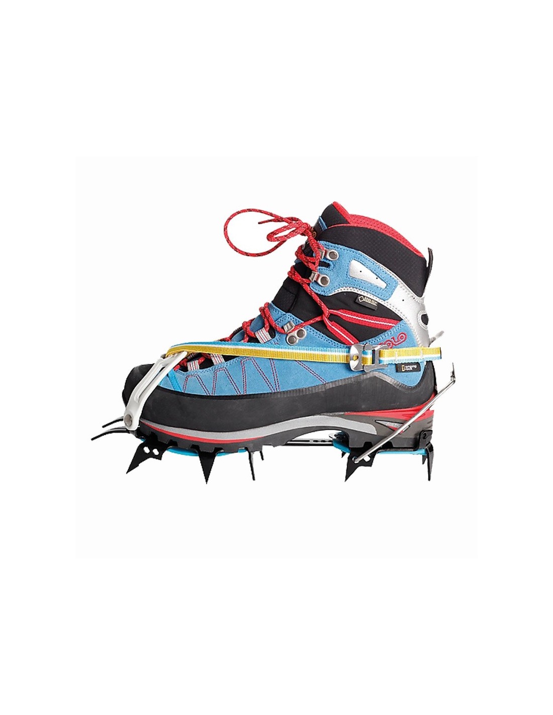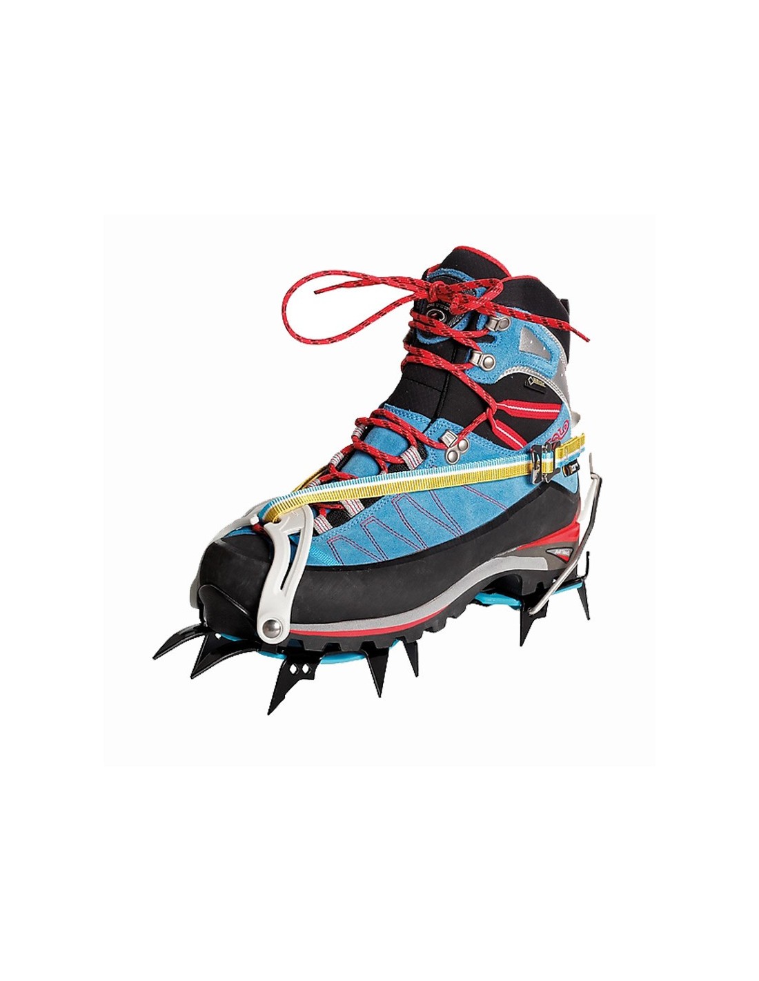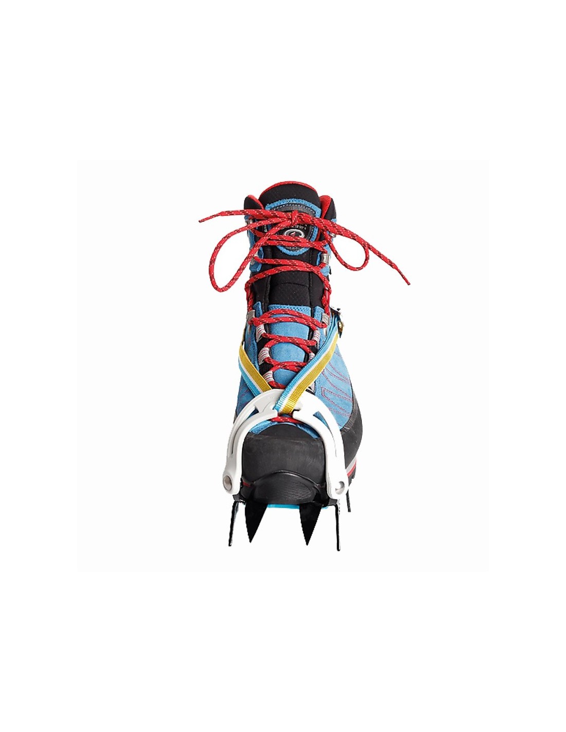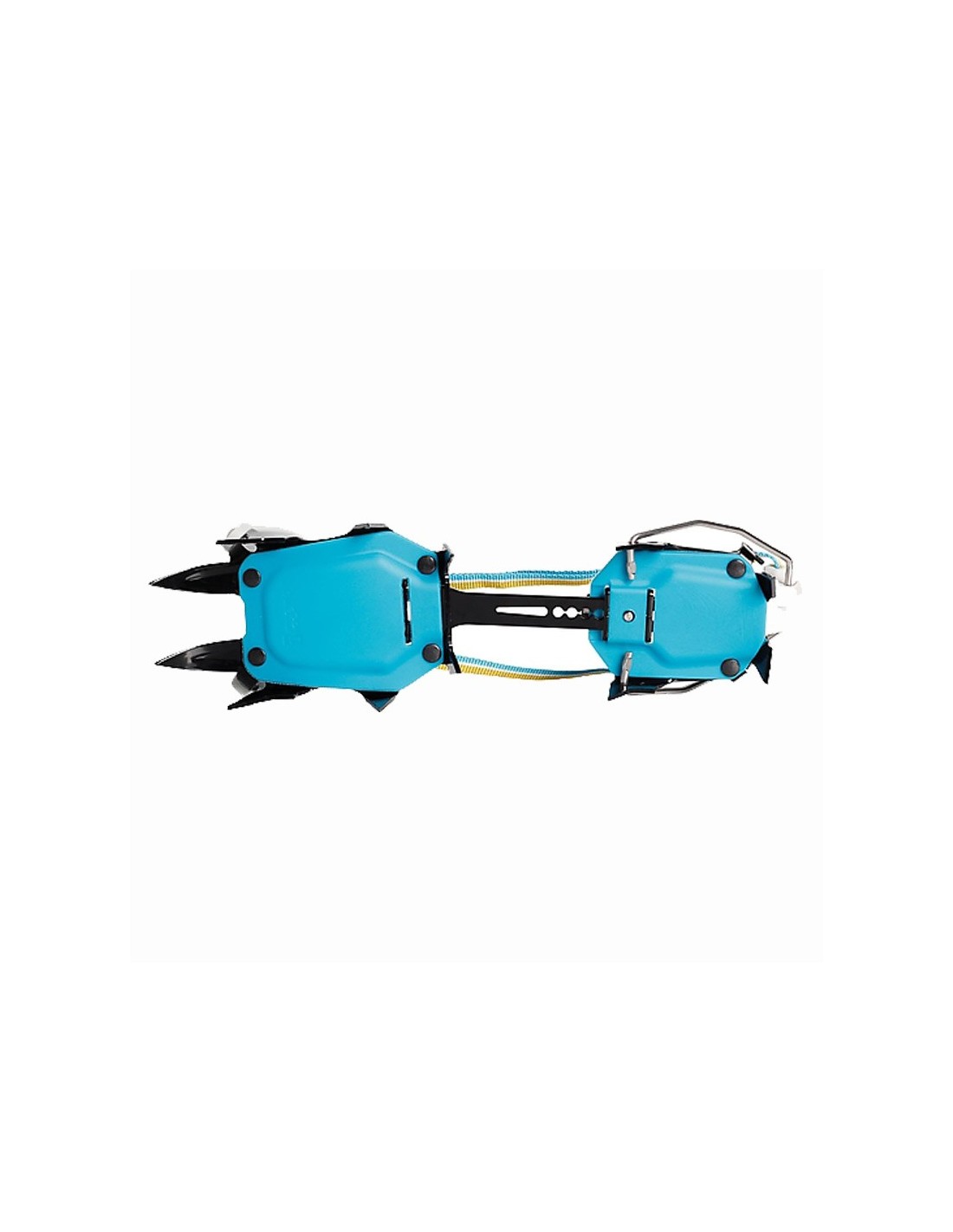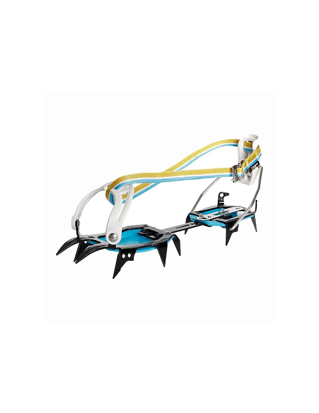 - La forma asimétrica de los crampones se adapta idealmente a la bota y a los puntos delanteros, proporcionando así la máxima eficiencia en terrenos empinados.