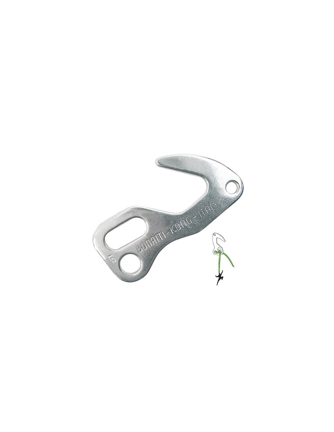El Resting Fiffi de Kong es un gancho tipo Fifí con la particularidad que sus orificios permiten usarlo con una configuración autobloqueante del cordino que nos permite regularlo en longitud fácilmente.