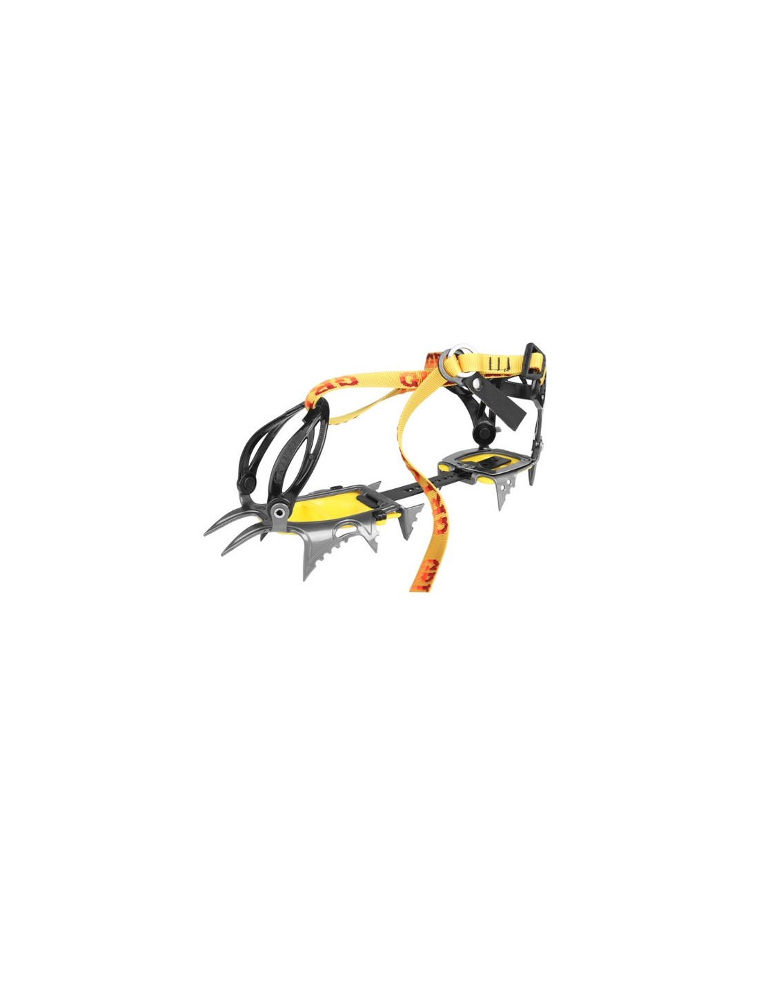 Un crampón de nueva generación, que te ofrece diez puntas en contacto con el hielo al caminar y doce que se agarran a la pendiente durante la escalada. Para conseguirlo, el tercer par de puntas es más corto y se encuentra en una posición desplazada. Además, las dos últimas puntas de la parte anterior presentan un ángulo doble para ejercer una sujeción frontal en descensos y una sujeción lateral en travesías.