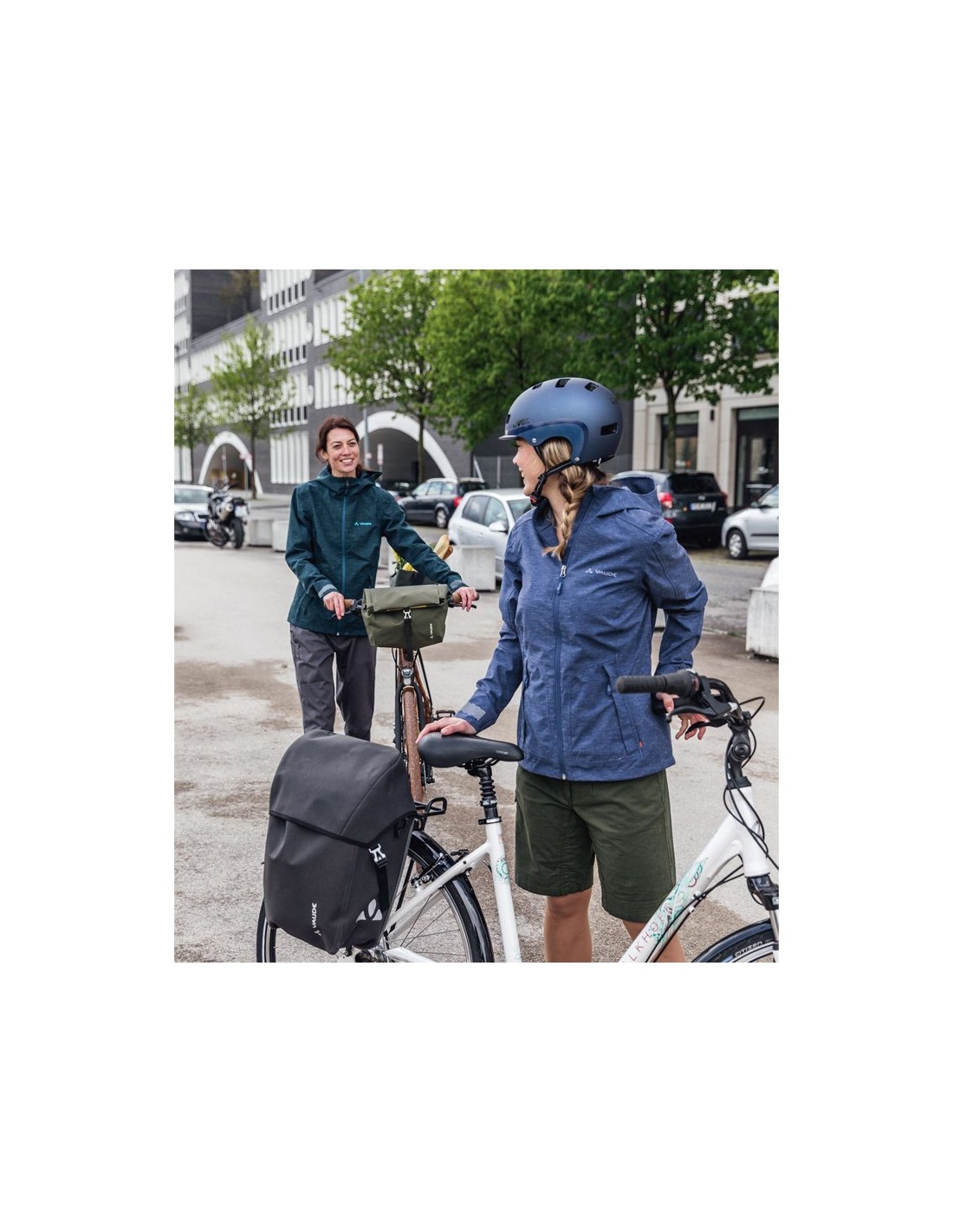 Esta bolsa de bicicleta urbana con cierre de tapa superior está fabricada con criterios de sostenibilidad en la sede de la empresa VAUDE del sur de Alemania, cerca del lago de Constanza.