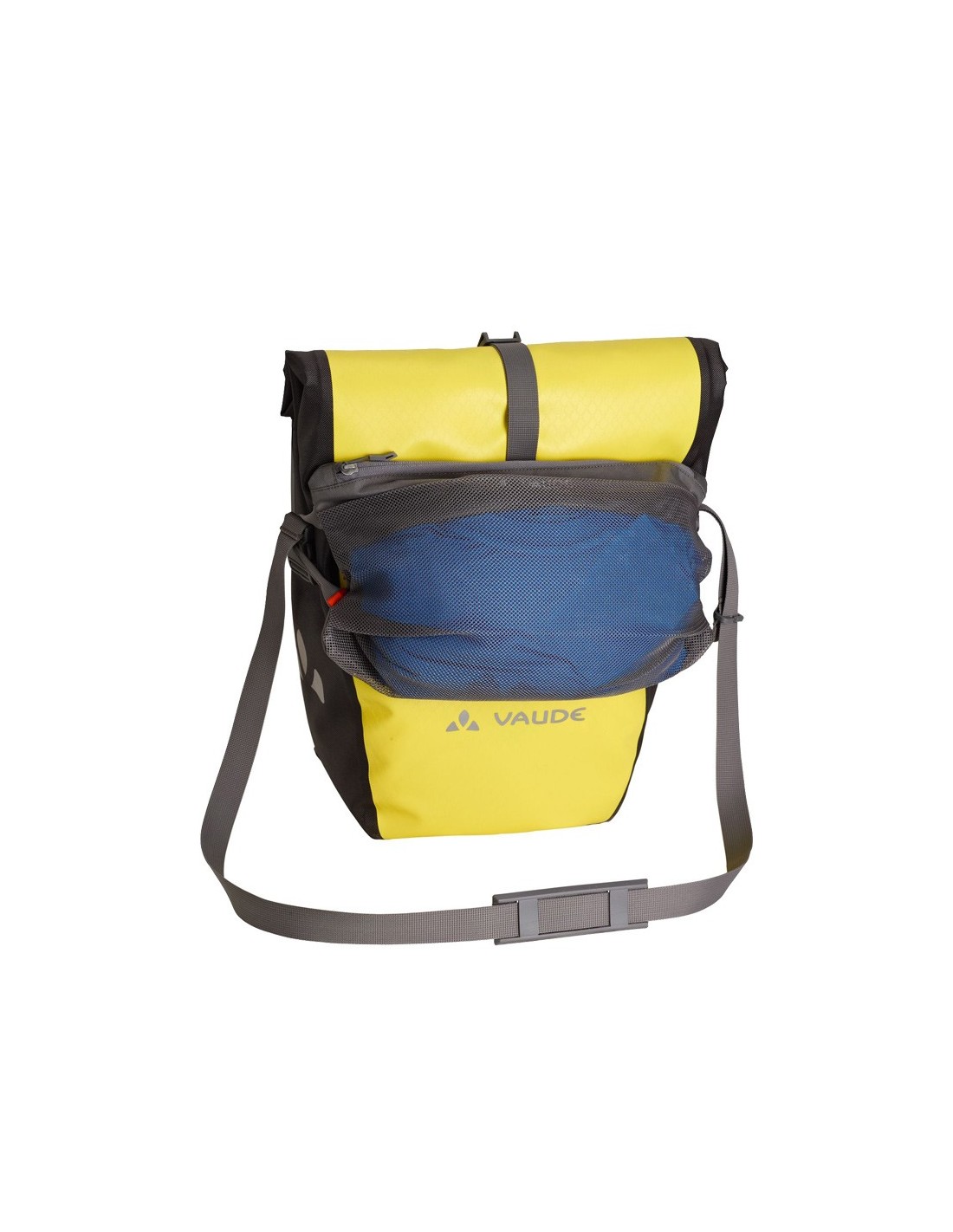 Con dos lazos laterales, se puede acoplar "estilo piggy back" a las bolsas para bicicleta de las series VAUDE Aqua y Roadmaster. De esta manera, su toalla mojada y su ropa se pueden secar mientras esta en ruta.
