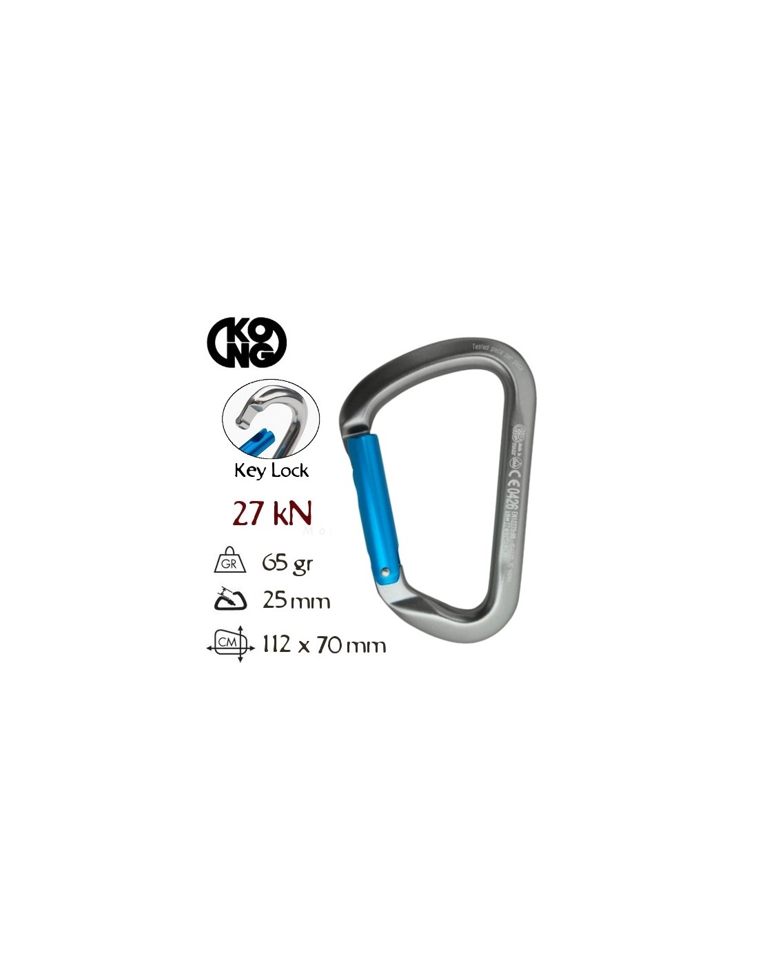 Dispone del sistema Key Lock, que al eliminar gancho de su cierre, mejora su manejabilidad evitando enganchones con cordinos, chapas, etc. Este detalle, junto con su tamaño, lo hace un mosquetón muy valorado por su uso como porta material, ya que los empotradores y pitones no se enganchan en el cierre y, en caso de emergencia, dispondremos de un mosquetón de altísima resistencia.