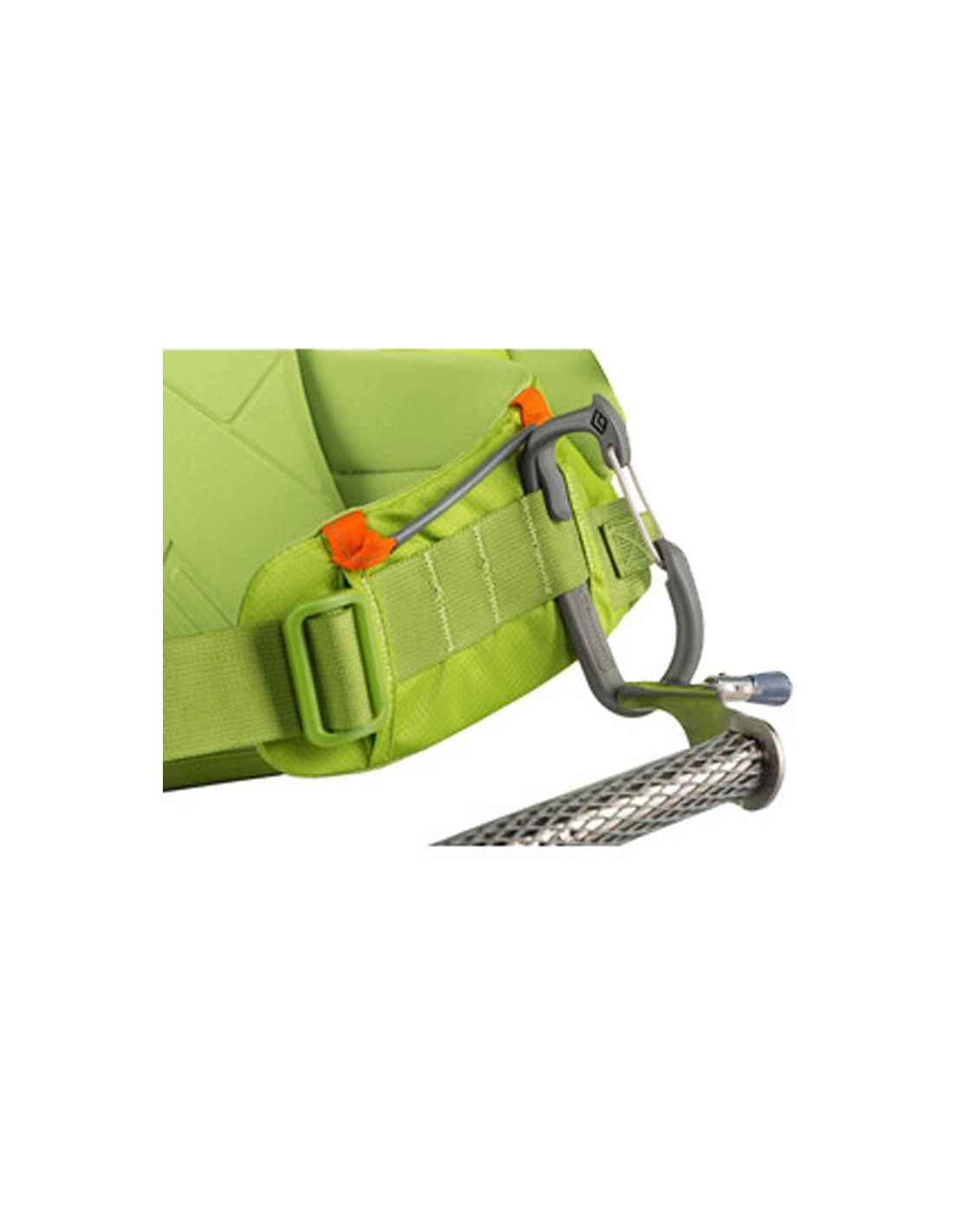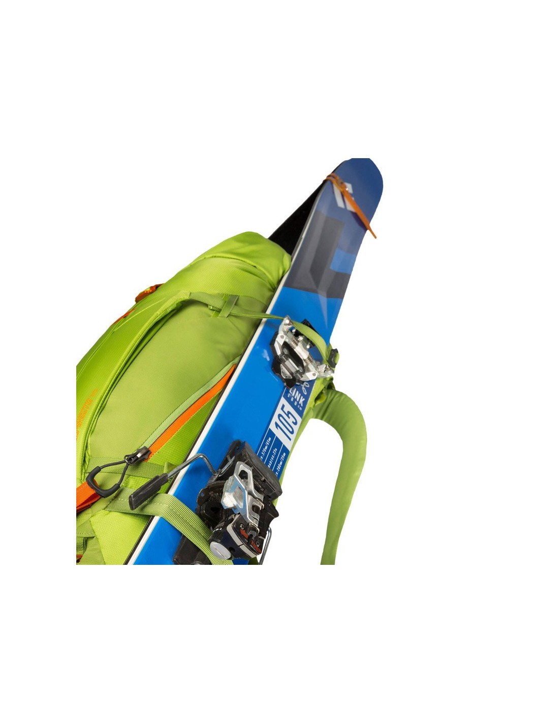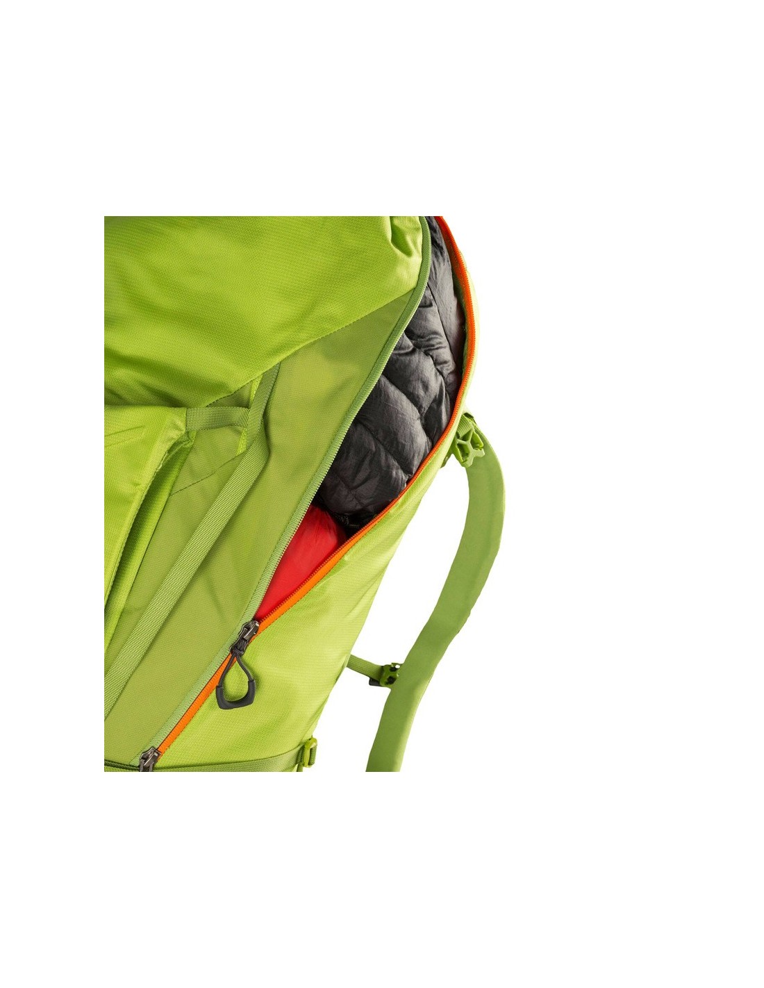 Un diseño en el que se pueden desmontar elementos como la cubierta superior, el armazón y el cinturón, hace que las escaladas exprés sean más ligeras y rápidas. Dobles anclajes para piolets y un bolsillo grande para los crampones, conservan el equipo voluminoso seguro, y las cremalleras con freno en toda la longitud dejan un acceso total a la parte superior del compartimento principal.