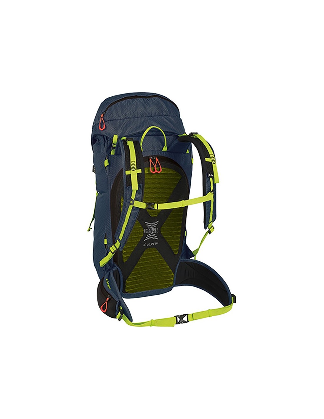 El nuevo sistema de ventilación XAir, la estructura de varilla de aluminio de 3 mm y las hombreras ergonómicas y transpirables garantizan el confort. El cinturón acolchado cuenta con bolsillo de cremallera y ranura portamaterial y es desmontable para no interferir con el arnés en actividades más técnicas.