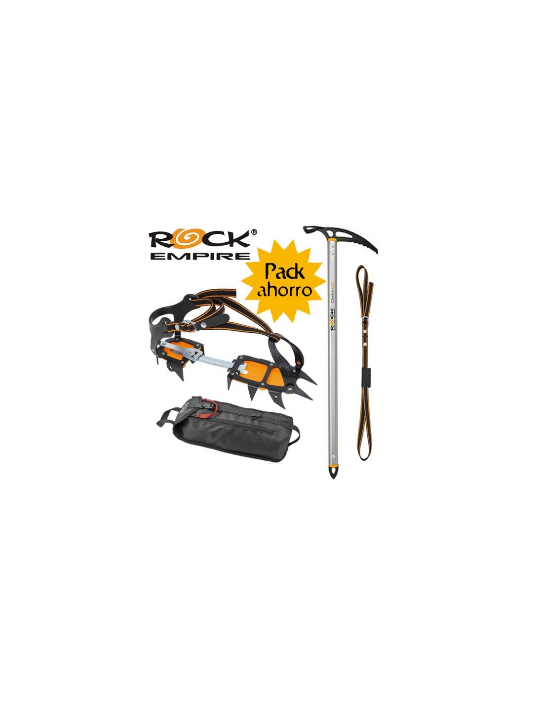 PACK CRAMPONES MACHKI-C + PIOLET CHACKAN + TRAVEL BAG DE ROCK EMPIRE