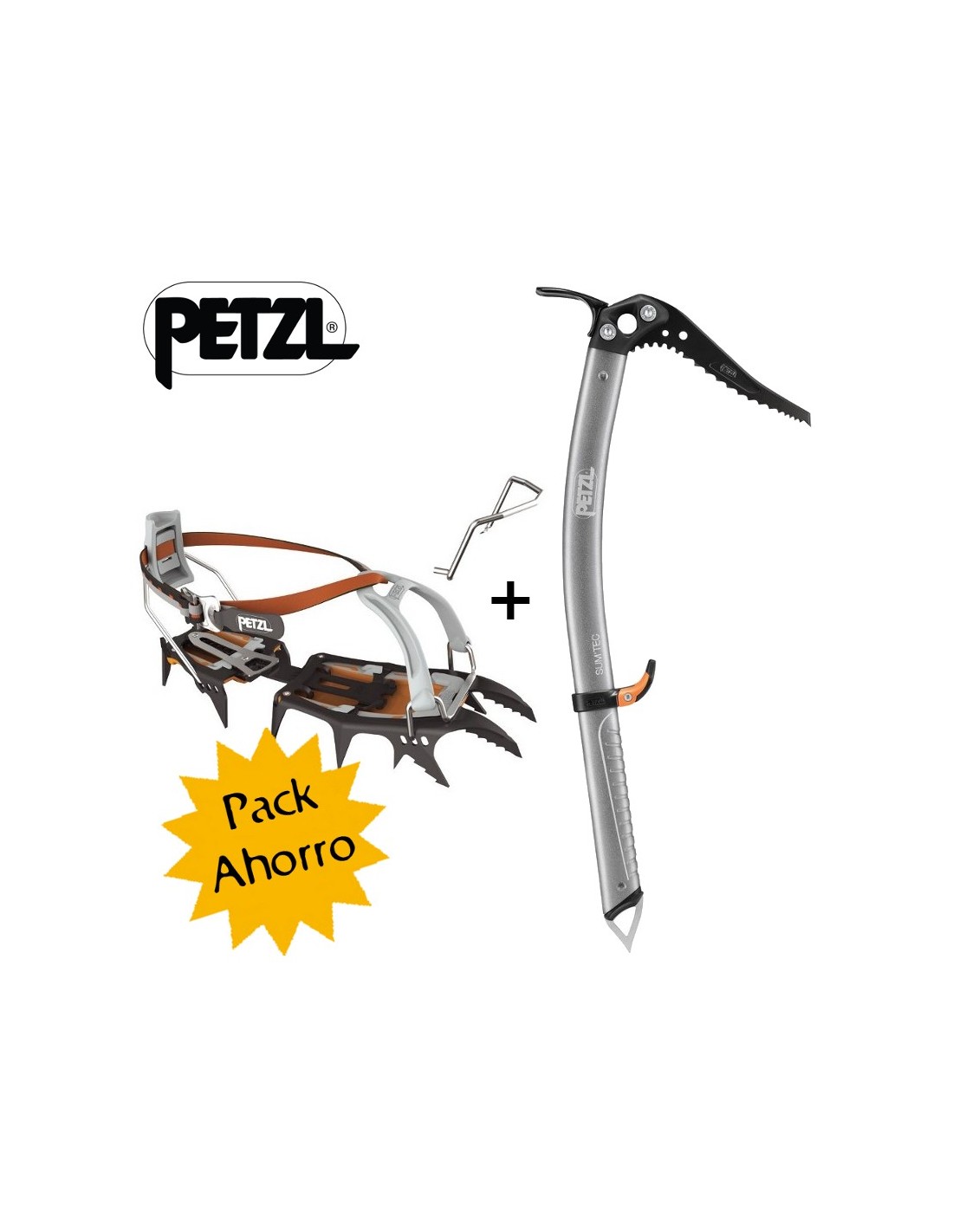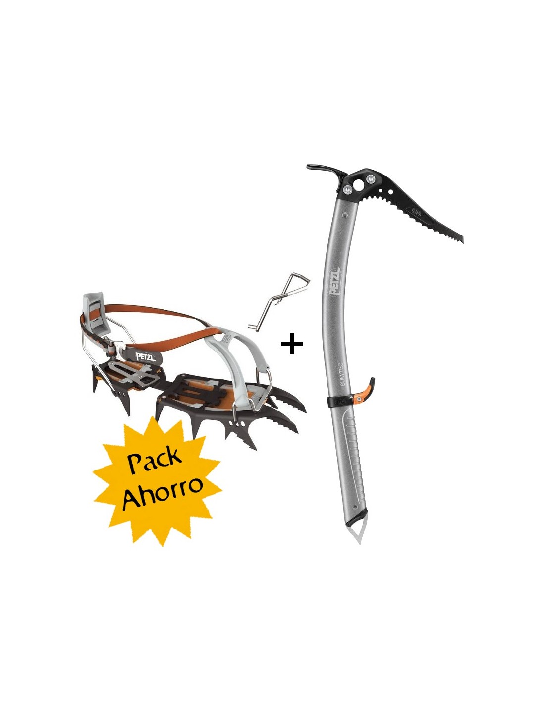Pack de crampones y piolet pensado para alpinismo técnico, compuesto por los siguientes elementos: