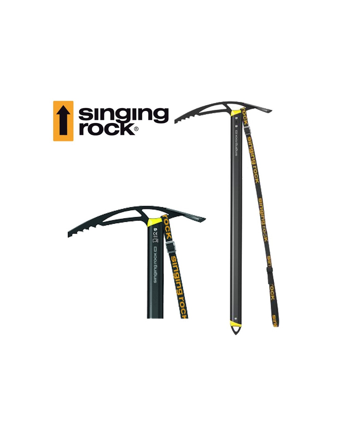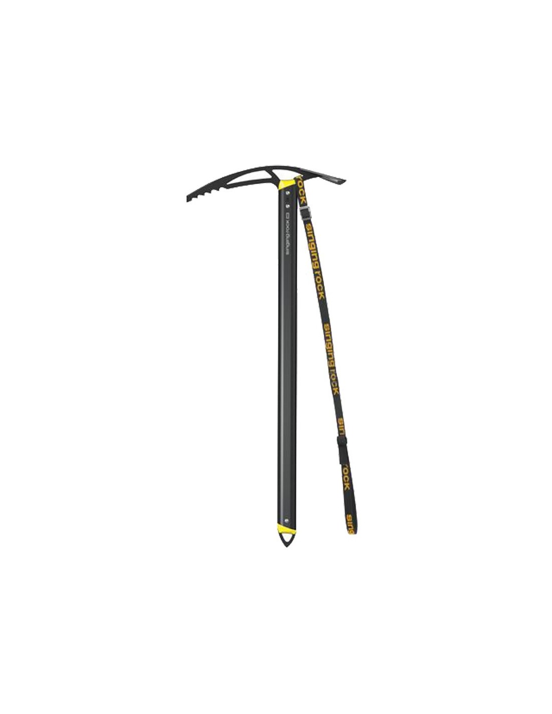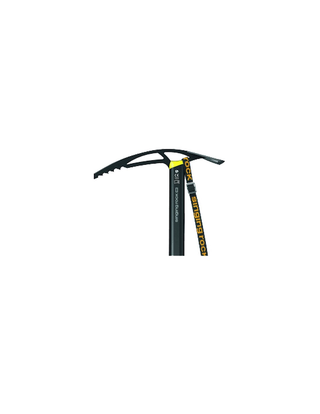 Tanto la cabeza como el regatón tienen orificios suficientemente grandes para fijar un mosquetón o una dragonera. De hecho, el piolet de alpinismo Singing Rock Merlin incluye la dragonera de poliamida Fix para asegurar el piolet a tu mano. La dragonera Singing Rock Fix soporta una resistencia de 1 kN (100 kg).