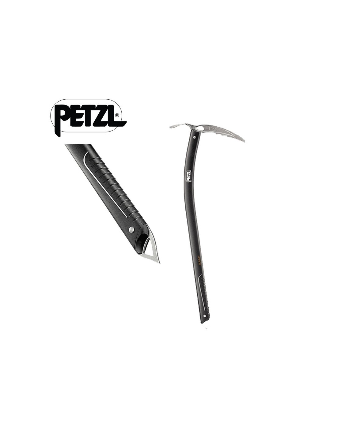 - Pala inclinada para guiar correctamente el piolet en la nieve (utilización como piolet-bastón).