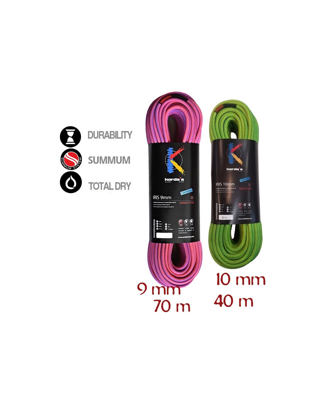 La Iris 10 de Korda's es una cuerda especialmente pensada y diseñada para el descenso de barrancos de uso intensivo y grupos numerosos. Es una cuerda muy manejable elaborada con colores de alta visibilidad que facilitan su localización incluso debajo del agua.