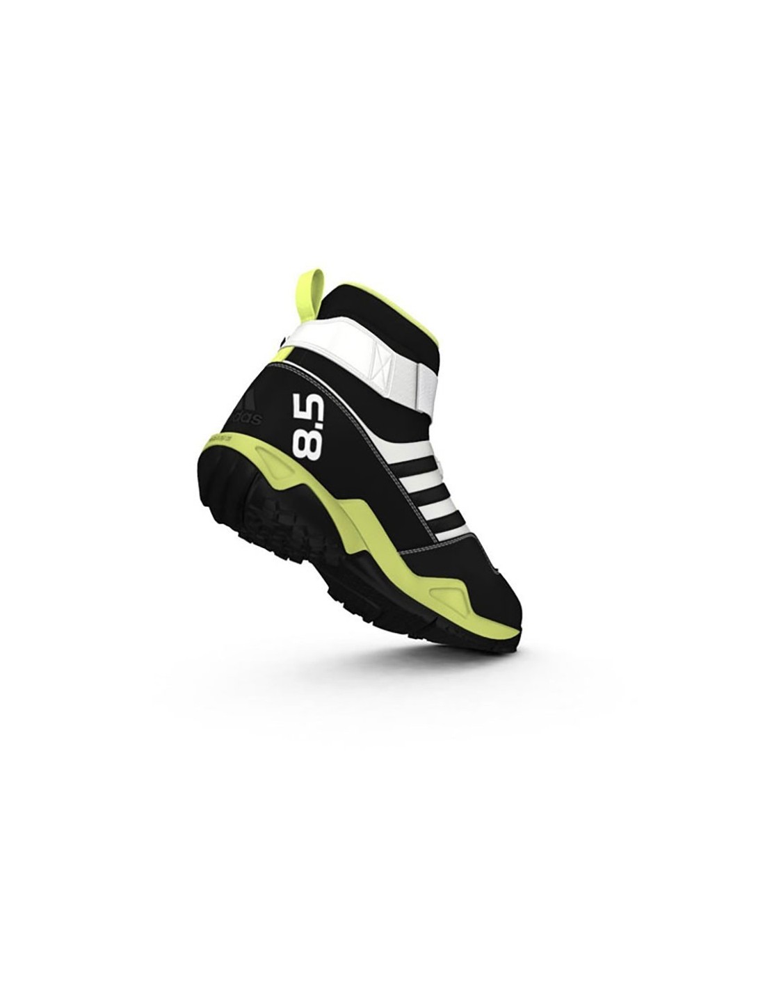 - Doble sistema de ajuste: mediante cordones y con dos bandas de velcro superpuestas a nivel de la caña (la exterior con cordón elástico y gancho de fijación).