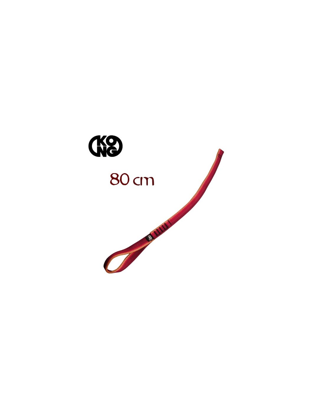 El aro adventure de Kong es un cabo de anclaje simple, con un aro amplio en un extremo, que permite realizar la alondra para unirlo al arnés y un pequeño bucle de cinta cosida en el otro extremo que permite colocar un mosquetón.
