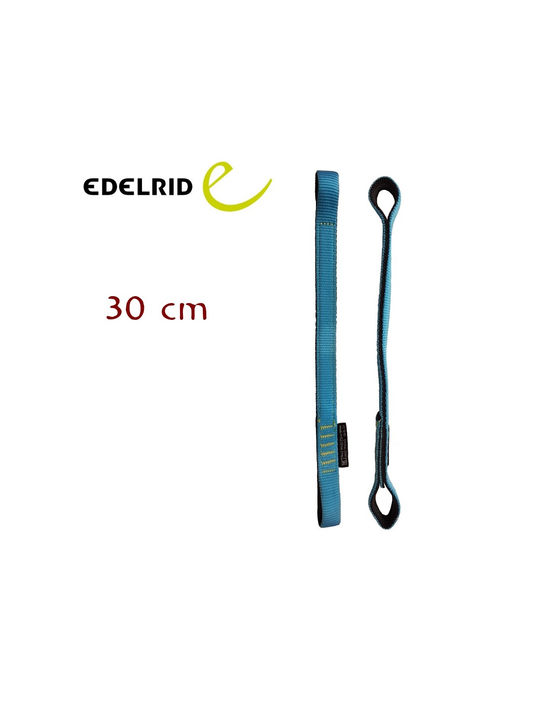 Cinta plana de 30cm con bucles cosidos en ambos extremos, suficientemente grandes como para permitir que un mosquetón de seguro de la vuelta completa.
