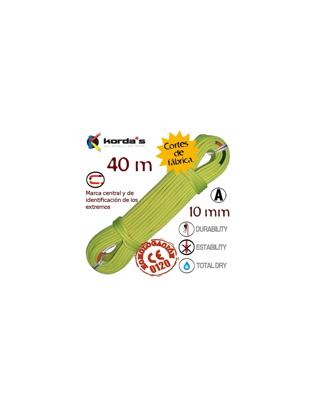 - Total dry: Acabado termoquímico con Fluocarbono. La cuerda es impermeable, absorbe menos agua, dura más y se retrasa el congelamiento.