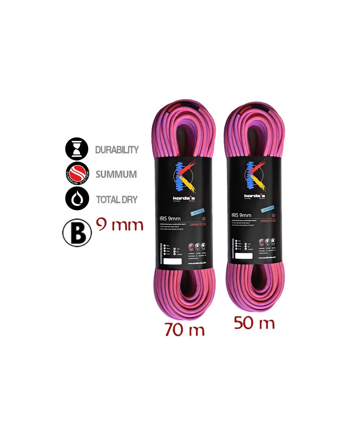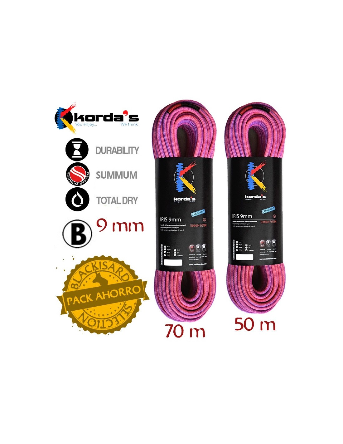 CUERDA SEMIESTÁTICA IRIS 9mm (una cuerda de 50 m + una cuerda de 70 m) - KORDA'S