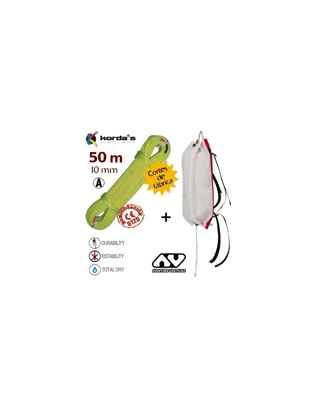 CUERDA BARRANCOS 50m DANA 10 de KORDA'S + BOLSA BY-PASS de AVENTURE VERTICALE
