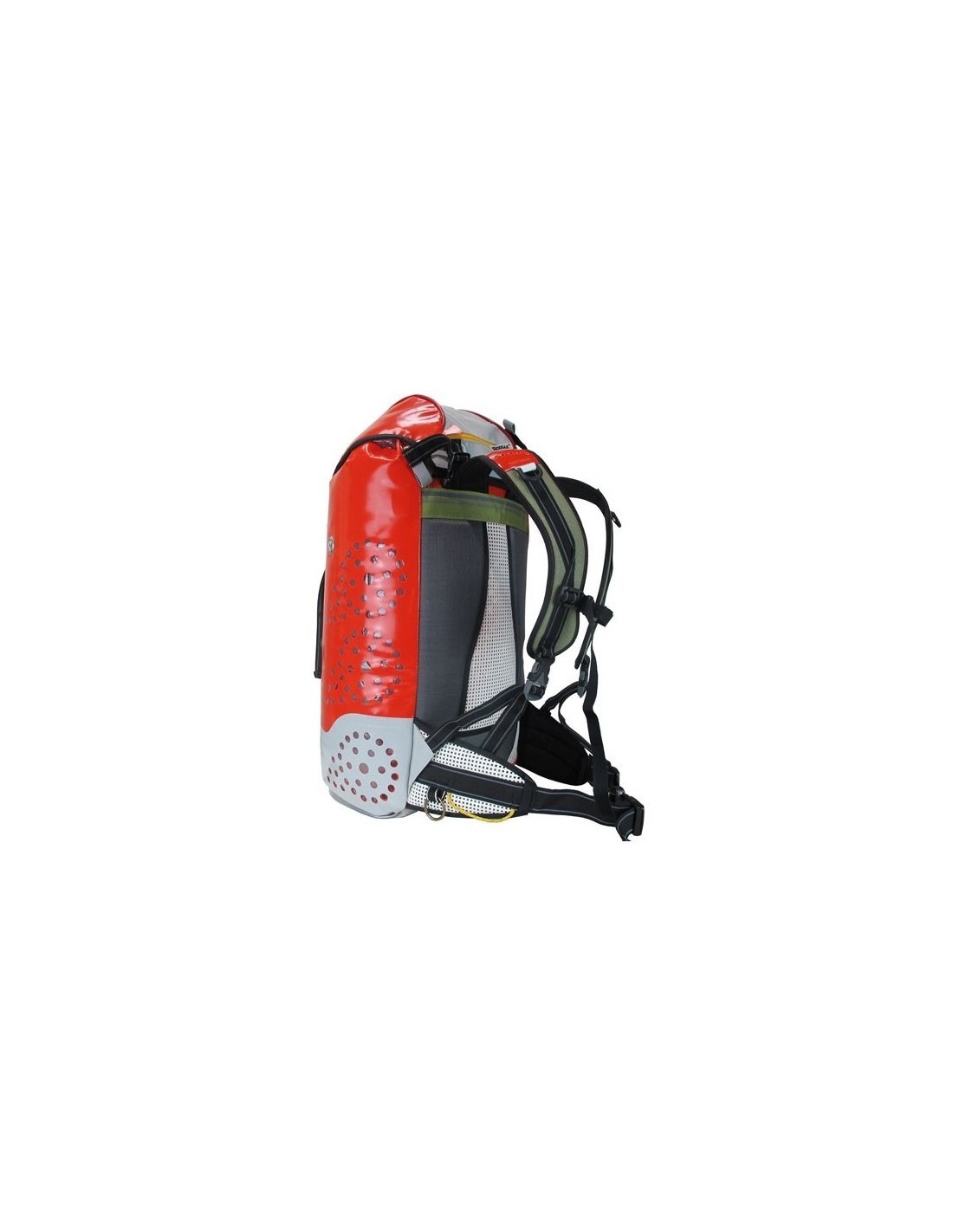- Cintas portamaterial en ambas hombreras y cinta especial de enganche para un mosquetón con el que se facilita el plegado de la cuerda de progresión en el interior de la bolsa flotante (modelo SERA) .