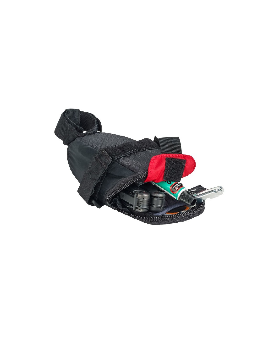 Para minimalistas. Una alforja ultraligera para sillín pequeña con dos pequeños bolsillos interiores que ofrecen suficiente espacio para sus herramientas de emergencia.