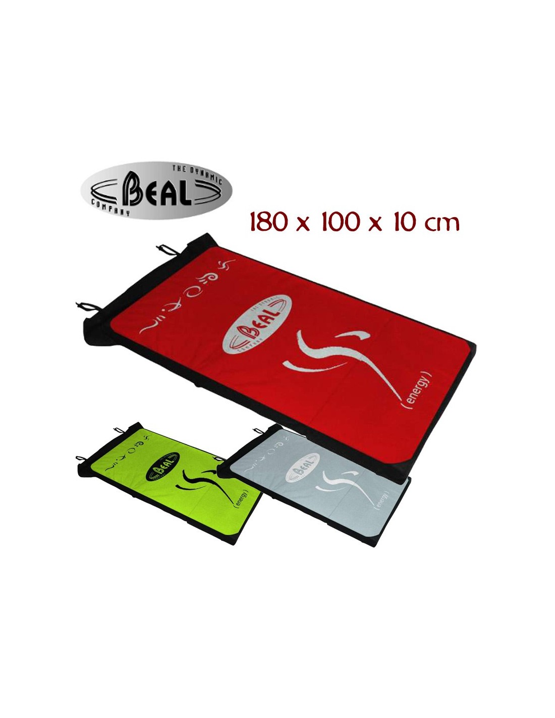 Beal ha incluido el concepto de espuma Verso en la almohadilla, esto significa que hay 3 capas de espuma, una de espuma de absorción de 50 mm de espesor en el medio que está emparedada por una espuma de aterrizaje más dura a cada lado. La espuma de aterrizaje tiene un grosor de 30 mm en el lado superior (de color) de la almohadilla y un grosor de 10 mm en el lado inferior (negro) de la almohadilla. Esto significa que puede usar la almohadilla con el lado de color hacia arriba cuando tiene problemas altos y luego darle la vuelta cuando escale mas cerca del suelo o problemas en desplomes en los que no puede aterrizar sobre sus pies.