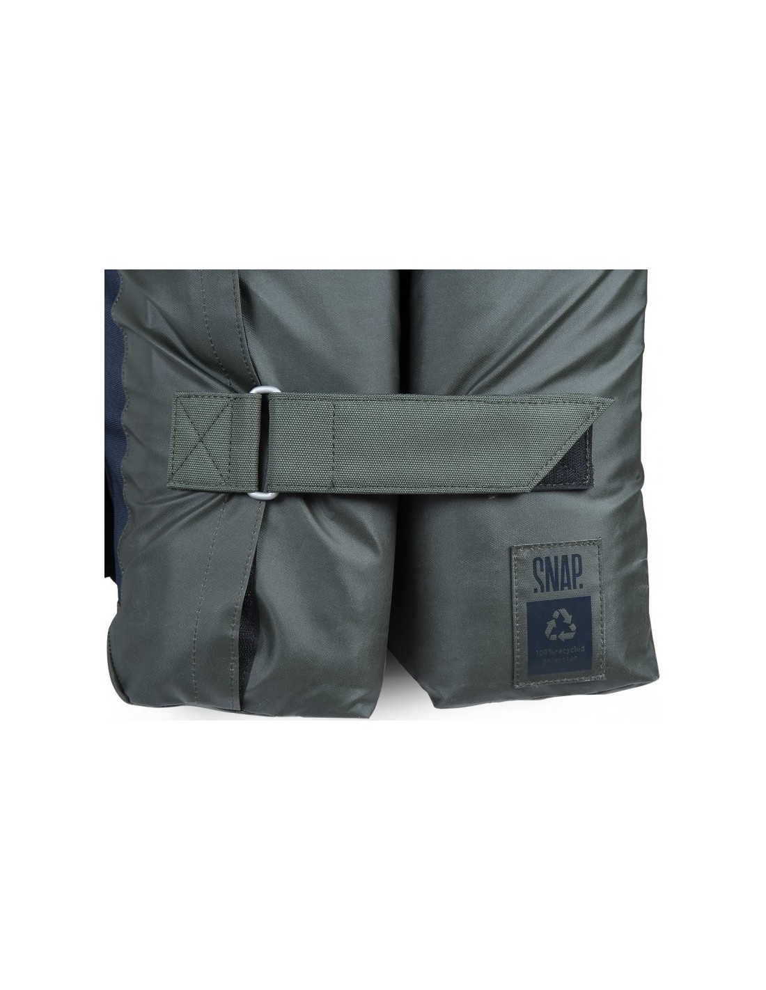 - El 100% de los productos Snap utilizan materiales que tienen menor impacto en el medio ambiente: algodón orgánico, poliéster y nylon reciclado, o materiales que usan poca agua (tencel, modal, cáñamo).