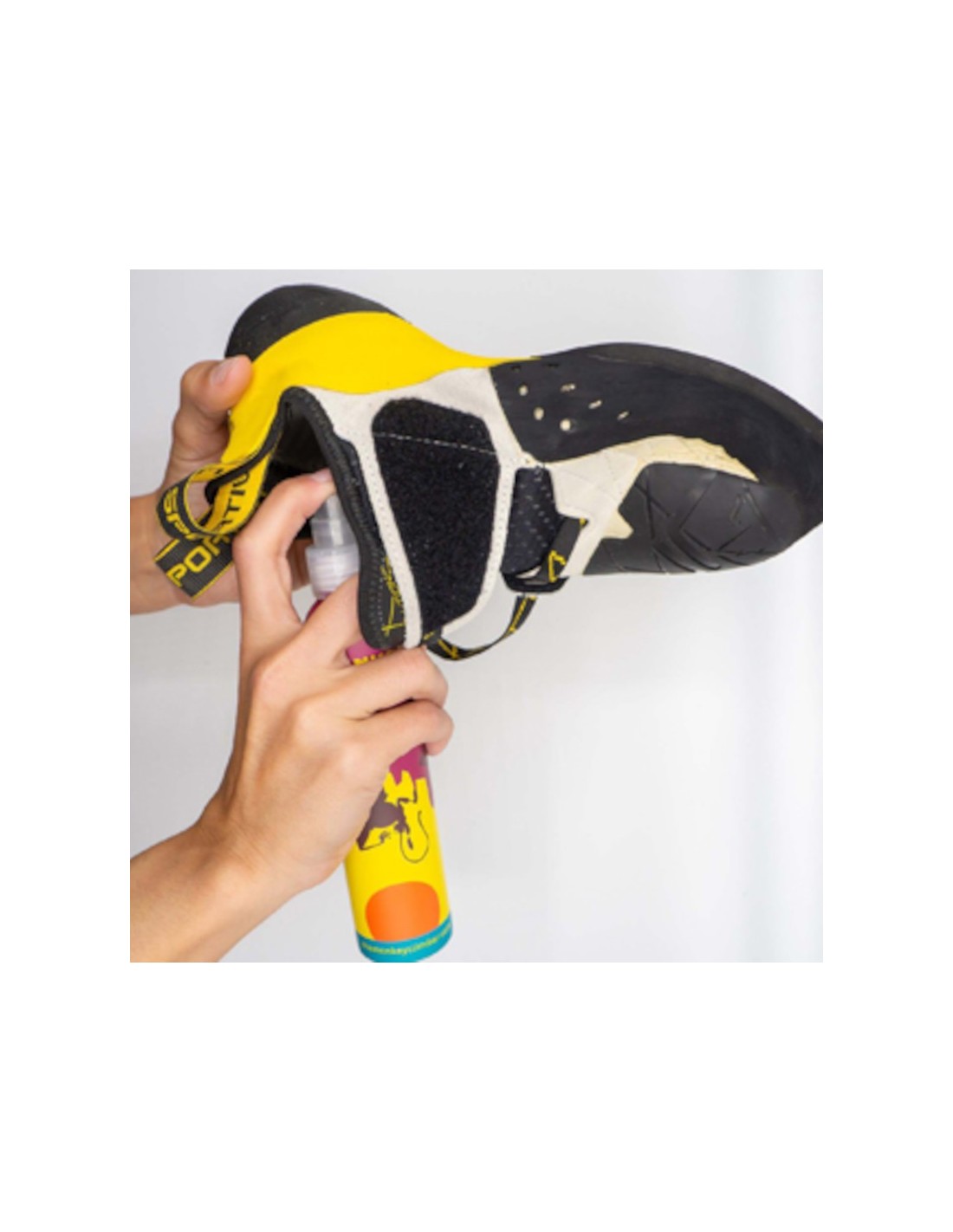Es una loción en espray especialmente desarrollada para facilitar el calzado de los pies de gato y permite el uso de tallas más pequeñas a la habitual, con el objetivo de mejorar la precisión y la seguridad durante la escalda.