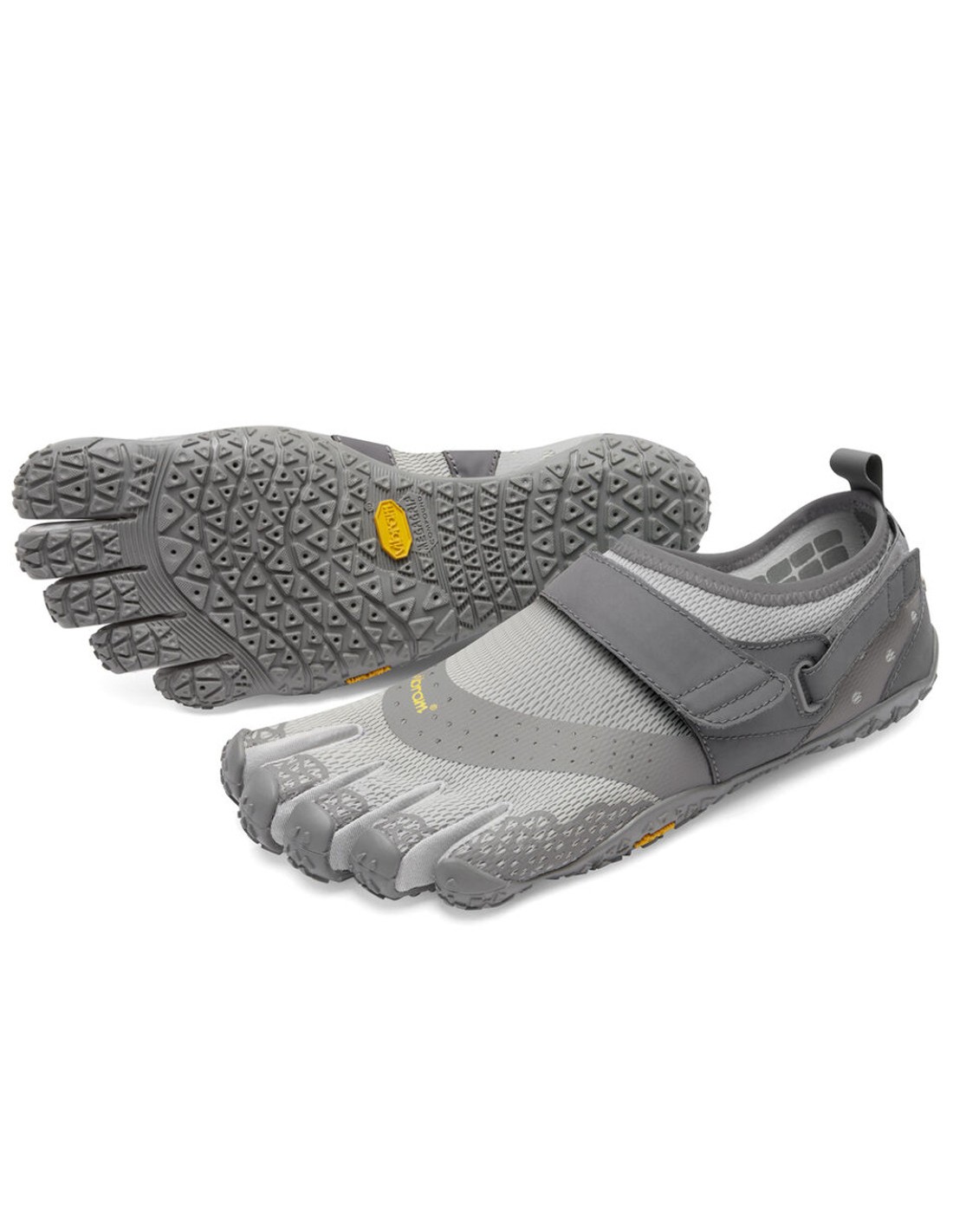 Este modelo permite el movimiento natural dentro y fuera del agua mientras se mueve por una variedad de terrenos. Una herramienta liviana, delgada y flexible para los pies, la V-Aqua es la mejor para aquellas situaciones en las que andar completamente descalzo no es una opción. El ajuste ceñido y el diseño liviano, junto con las perforaciones en la suela Megagrip muy duradera, permiten que el agua se mueva rápidamente a través del zapato para un secado rápido. Una impresión de silicona distintiva adicional, líder en la industria, dentro del revestimiento evita el deslizamiento interno adicional.