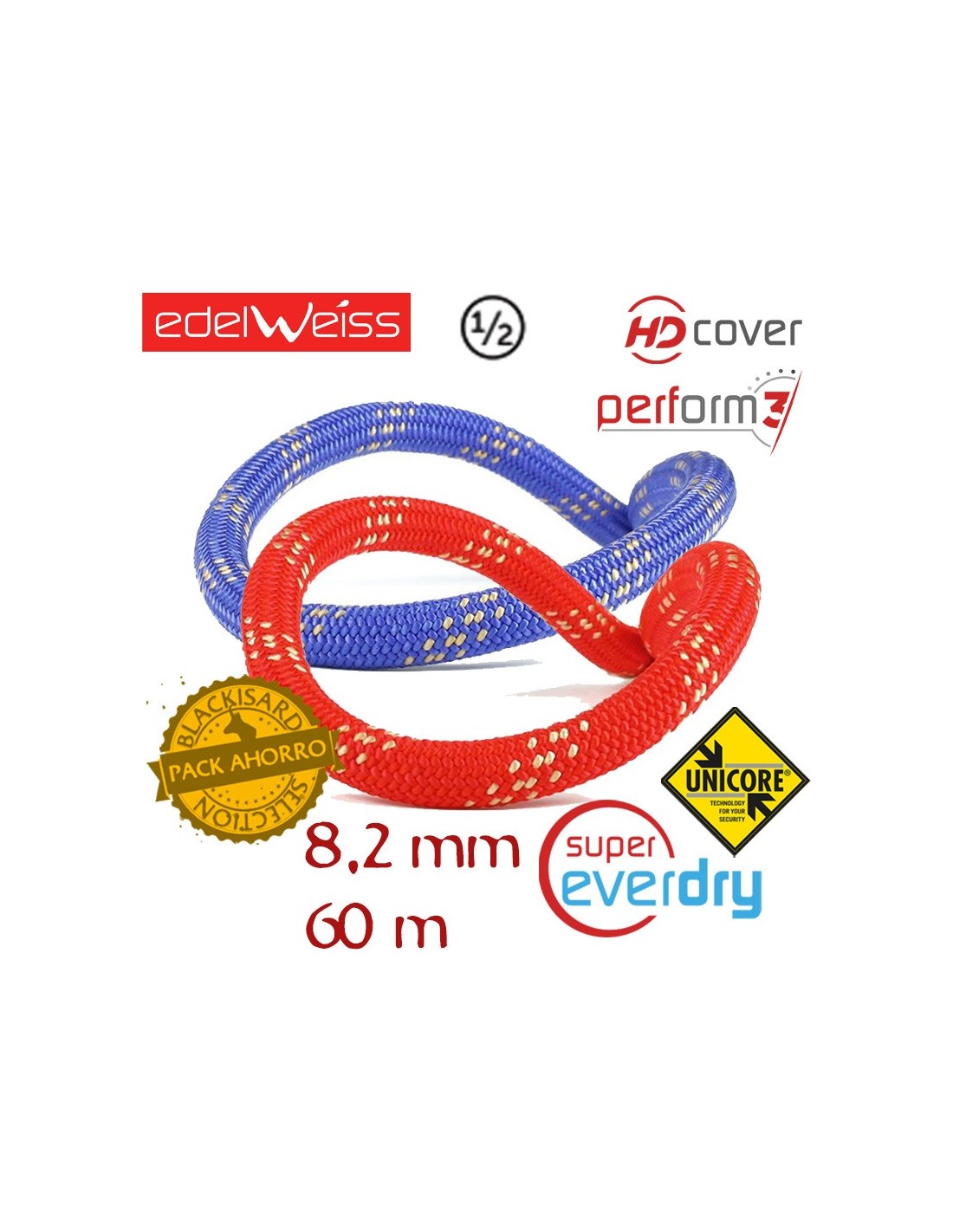 PACK 2 CUERDAS DOBLES 60 M OXYGEN II 8,2 MM SUPEREVERDRY (AZUL Y ROJA) - EDELWEISS