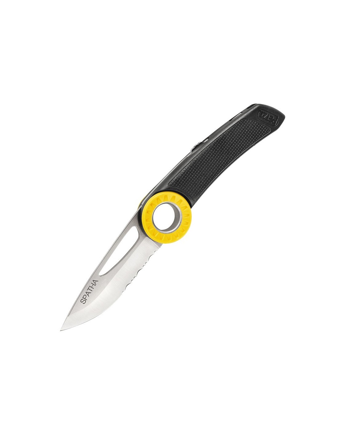 La navaja SPATHA está diseñada para acompañar al trabajador en altura durante su trabajo diario. El perfil de la hoja permite cortar fácilmente cuerdas y cordinos.