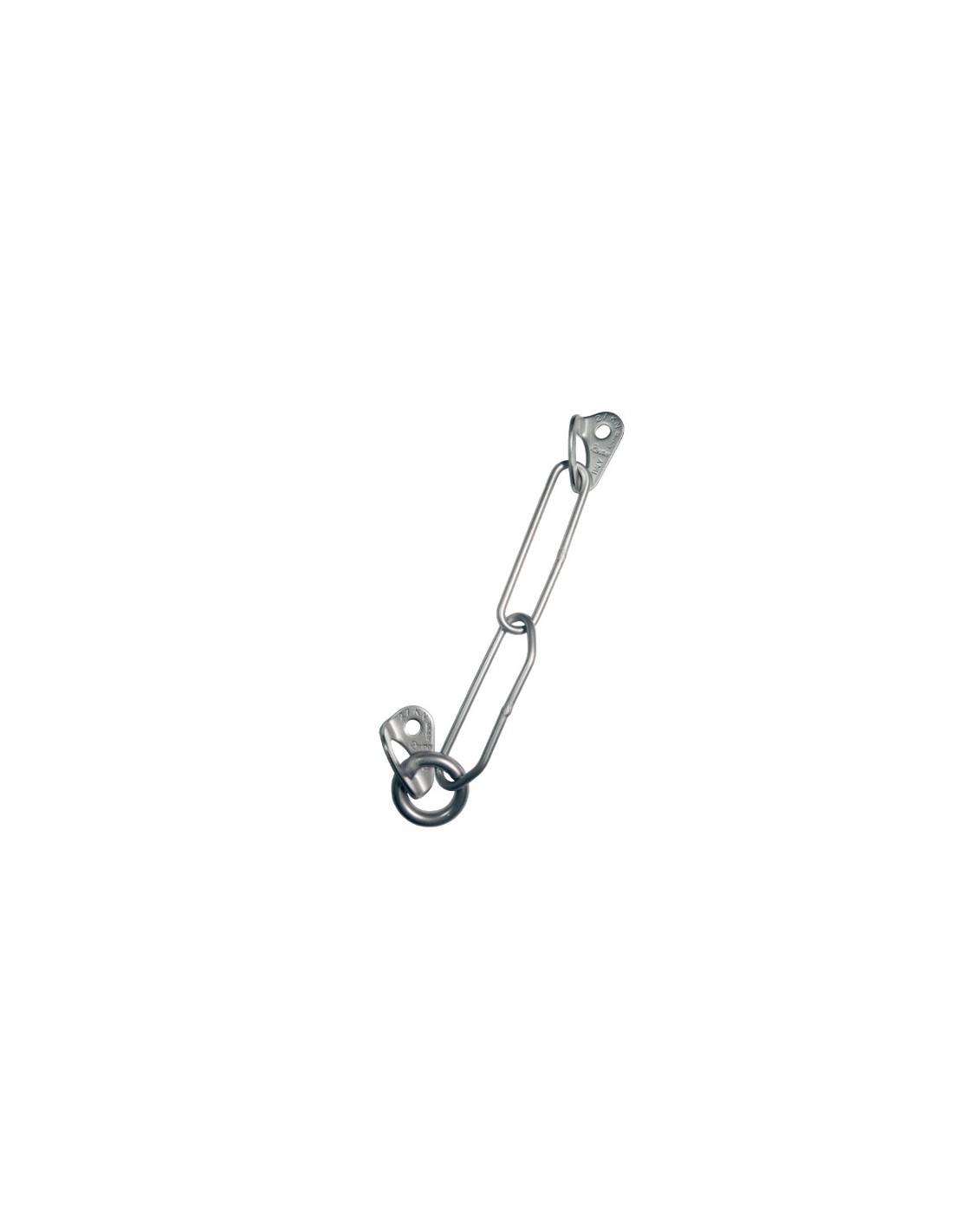 Realizada en acero inox AISI 316 L esta constituido de 2 plaquetas ROCK Ø10, una cadena y un solo anillo redondo en barra de 10 mm.