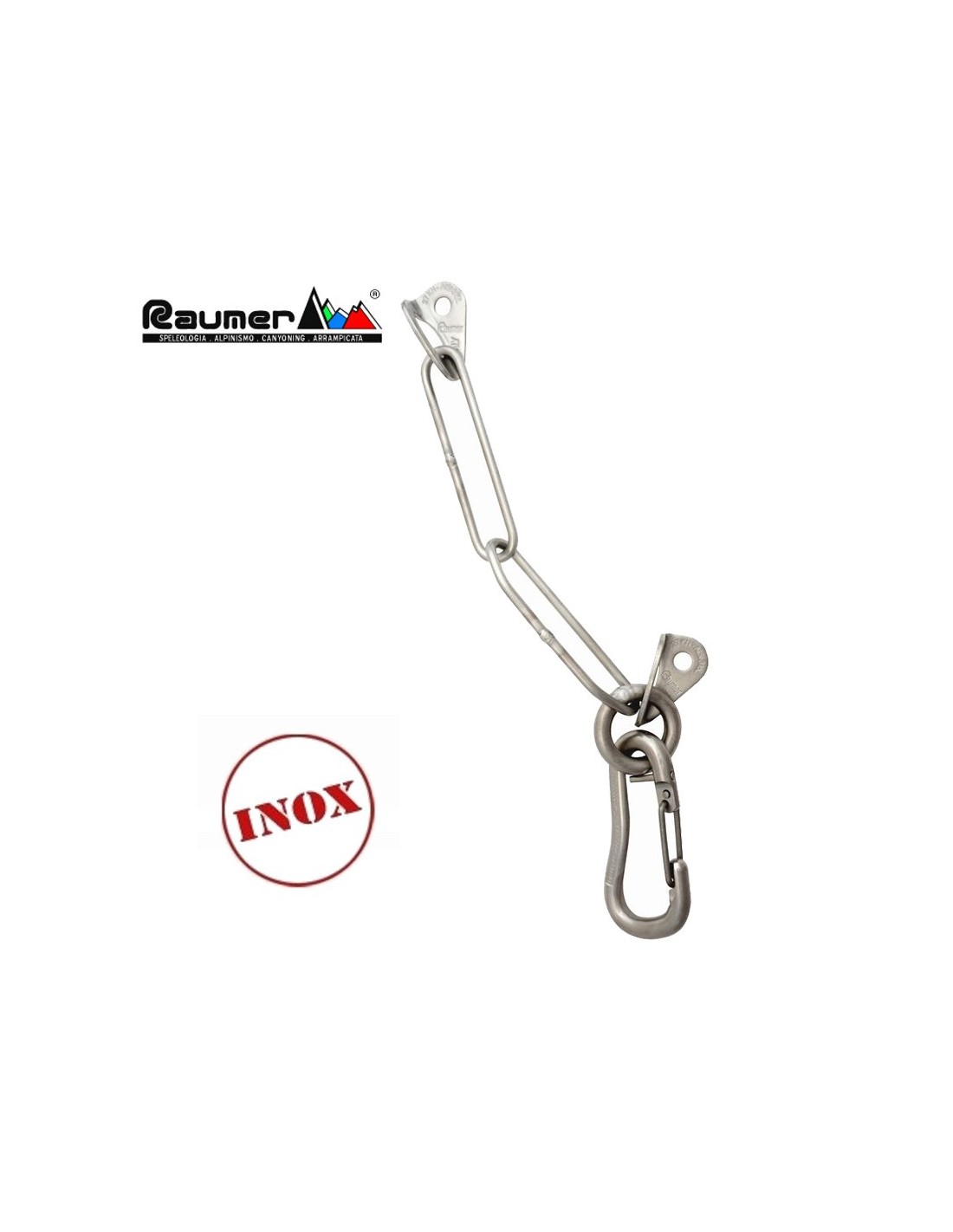 - Constituida de: 2 plaquetas ROCK Ø10 (art 110), una cadena (art 175), un solo anillo redondo en barra de 10 mm (art 177) y un mosqueton R5000 (Art. 600).