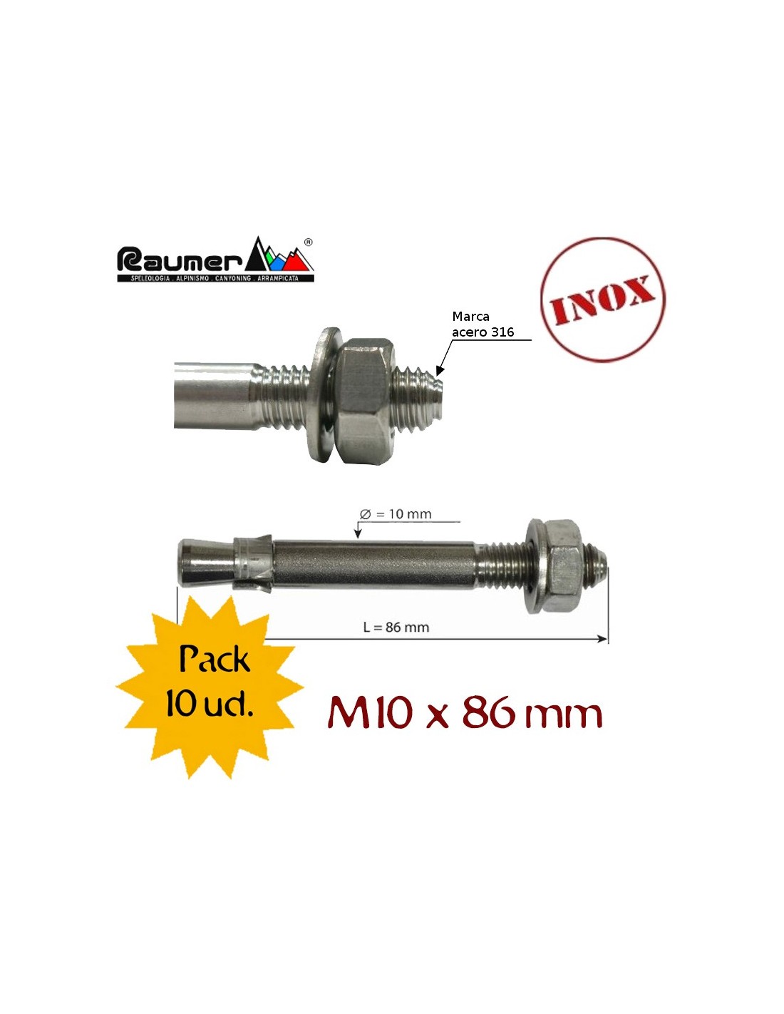 - 10 tornillos de expansión Inox. M10 x 86mm - Raumer