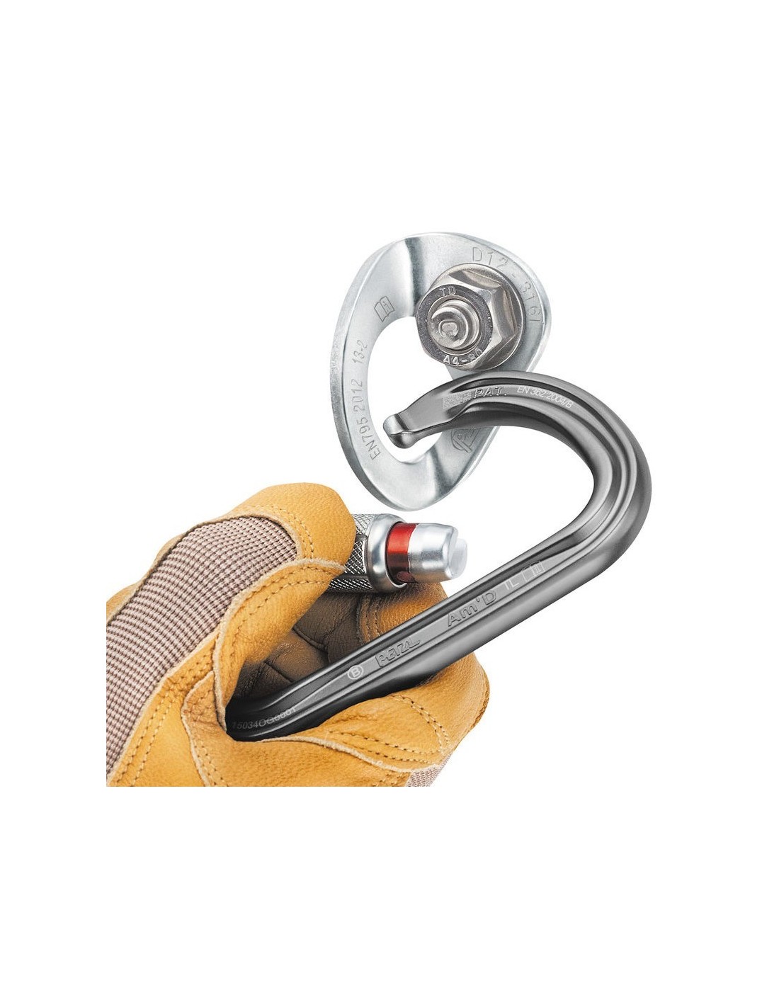 - Orificio de conexión amplio y ergonómico que facilita el mosquetoneo.