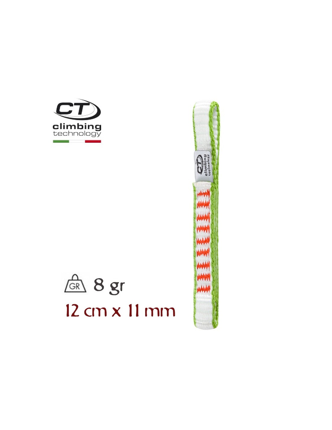 - 11 mm de ancho de cinta Dyneema, y 12 cm de largo.