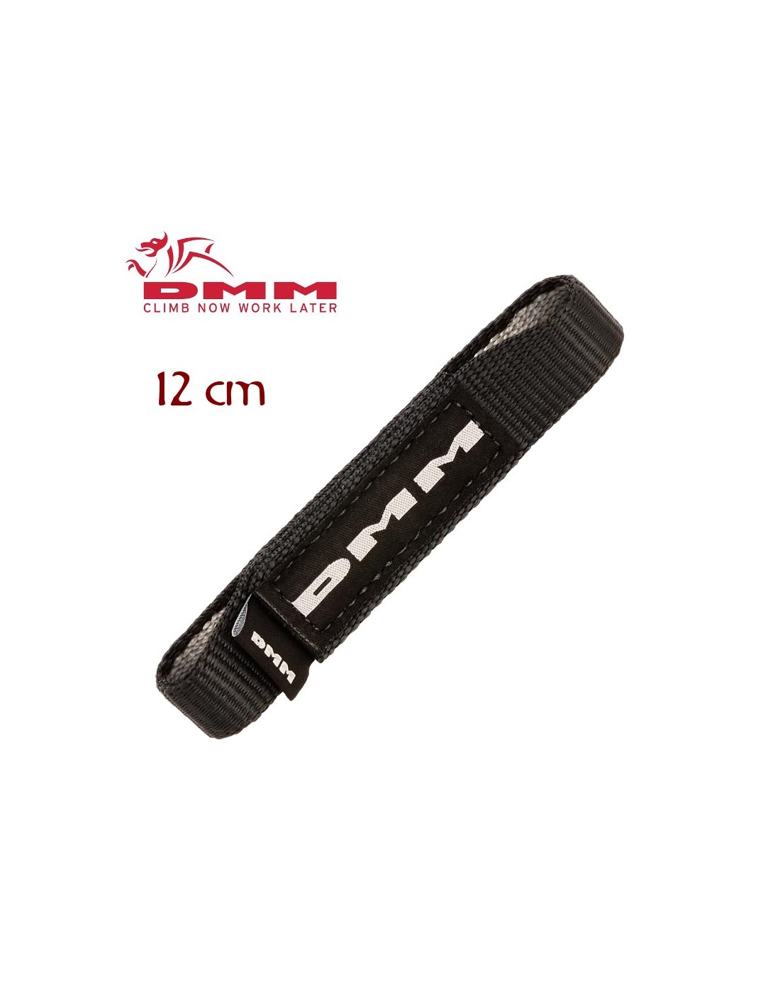 Cinta express de 12 cm de largo de la marca galesa DMM mas estrecha en las puntas para que trabaje mejor con el mosquetón.
