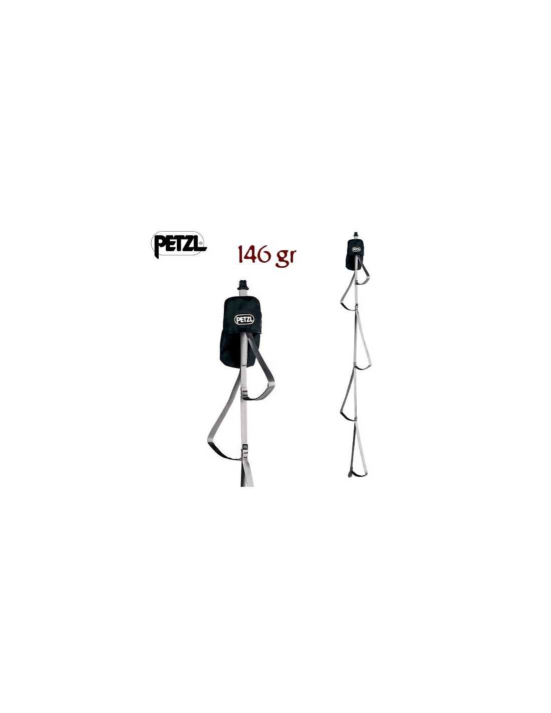 - Se sirve con un STRING para retener el mosquetón en la posición correcta y proteger la cinta de la abrasión.