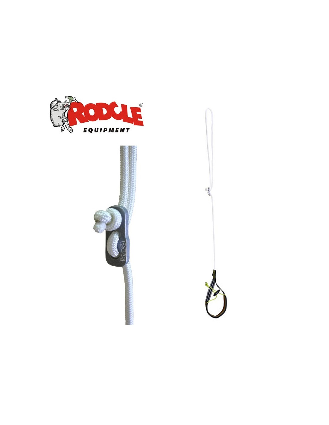 Pedal en cinta con cordino de DYNEEMA de 135cm y longitud regulable fácil y rápidamente mediante regulador de aluminio. Incorpora un sistema de ajuste al pie, desarrollado por Rodcle, mediante elástico que impide que se nos salga mientras lo usamos.