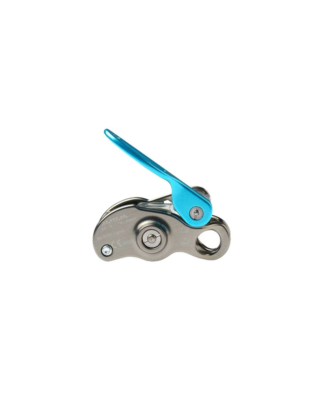 Dispositivo de aseguramiento compacto con frenado asistido para escalada con plomo o cuerda superior.