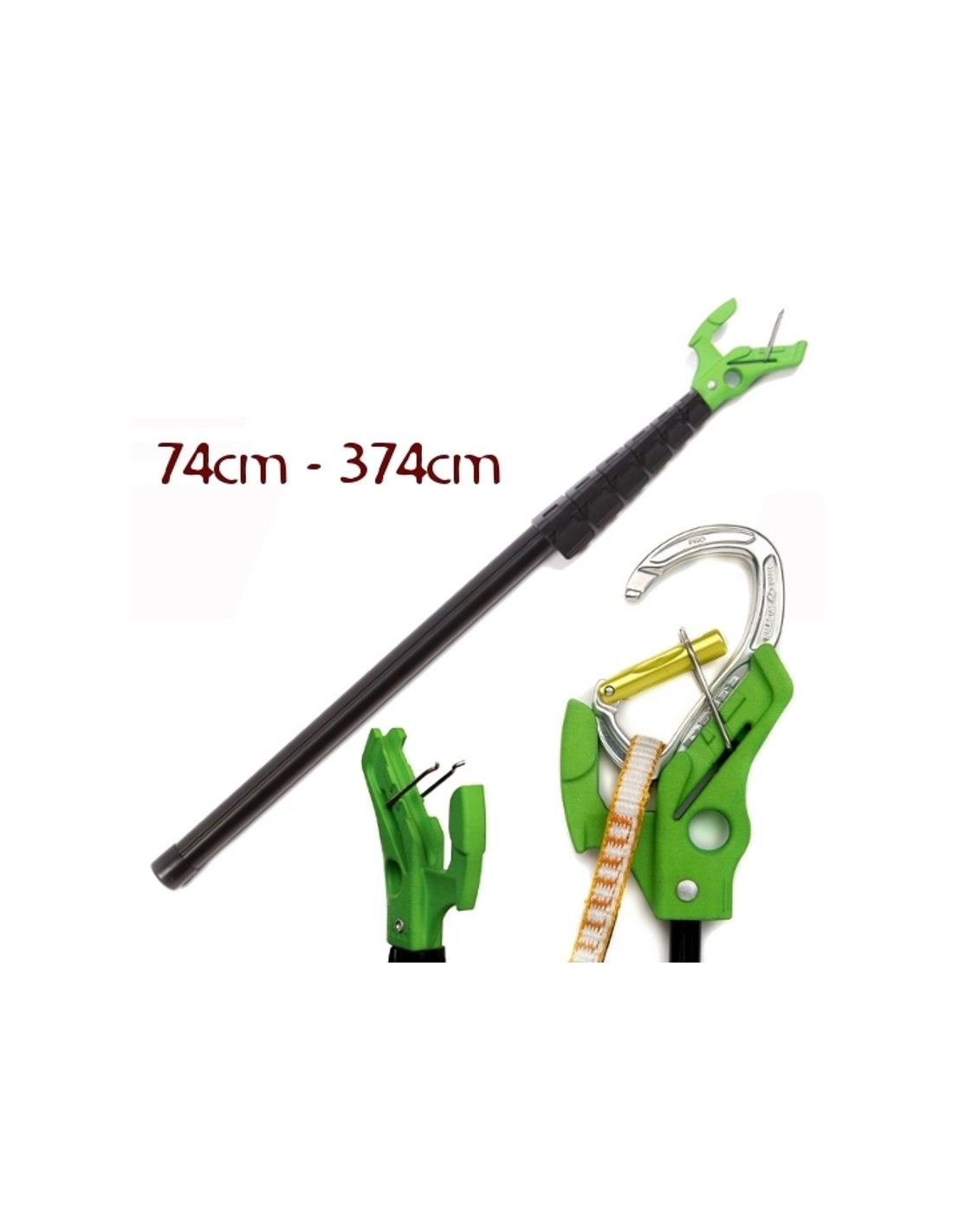 Caña extensible para premosquetonear cintas express en la primeras chapas de la vía.