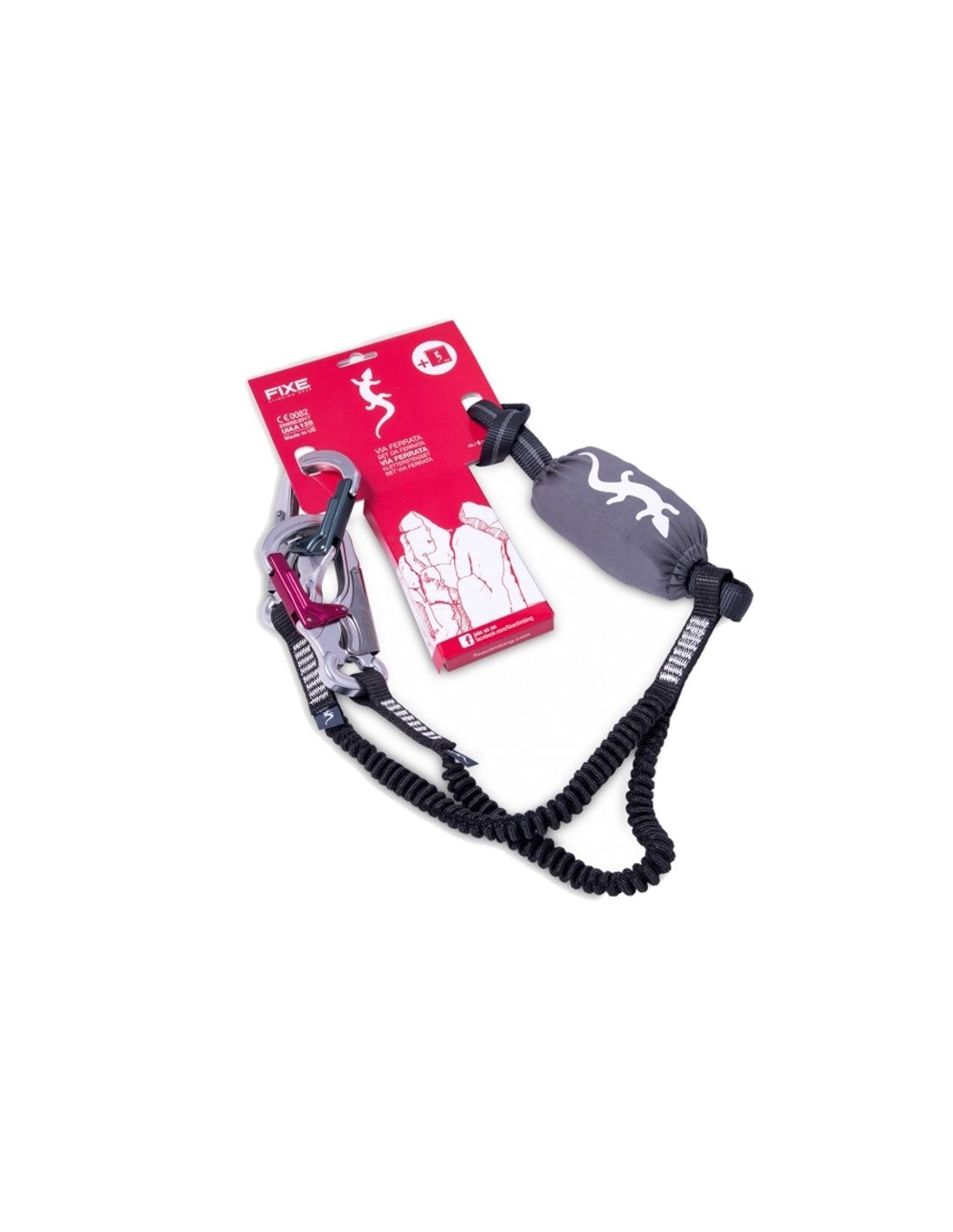 Disipador para vía ferrata de a marca FIXE con doble mosquetón automático de dos movimientos.