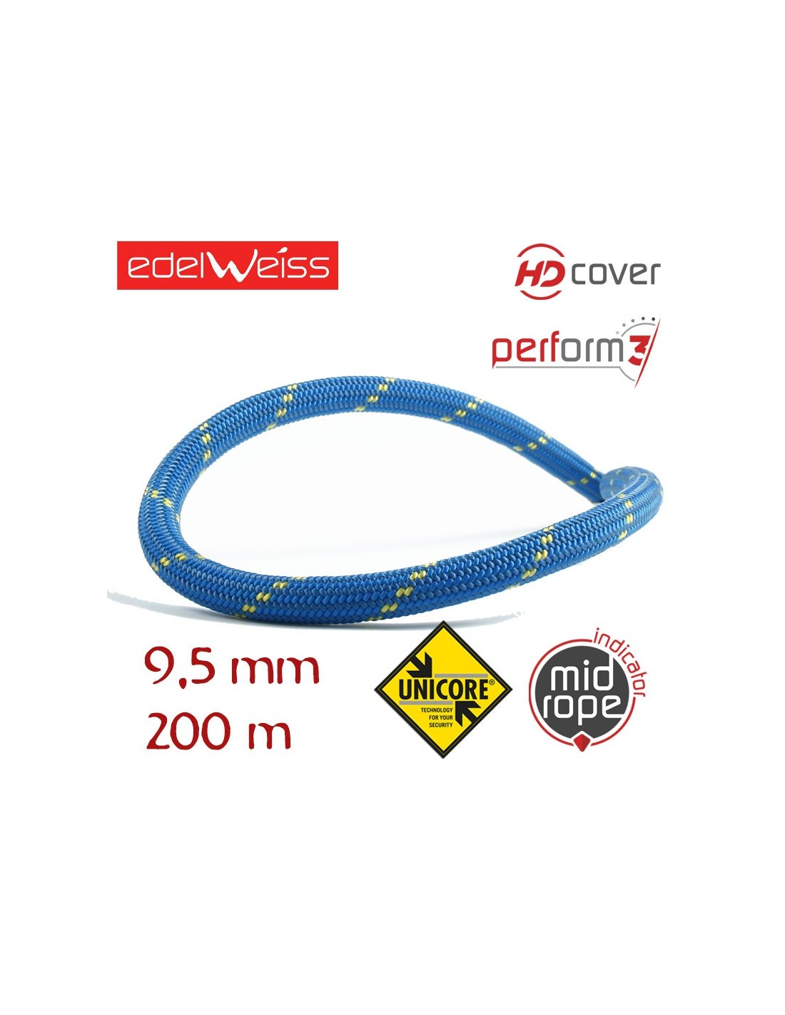 Perform 3: Gracias a una larga experiencia en la fabricación y desarrollo de productos dedicados a la verticalidad, EDELWEISS presenta Perform 3, una nueva generación de cuerdas, fiel a nuestra reputación de durabilidad y confiabilidad, más liviana y de mejor manejo, con aún más absorción de impactos. Este es el resultado de un desarrollo dedicado en el material, su tratamiento y en la construcción misma de la cuerda.