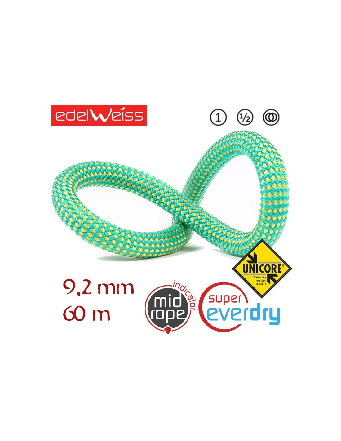CUERDA TRIPLE HOMOLOGACIÓN PERFORMANCE 9,2 UNICORE SUPEREVERDRY 60 M (VERDE) - EDELWEISS