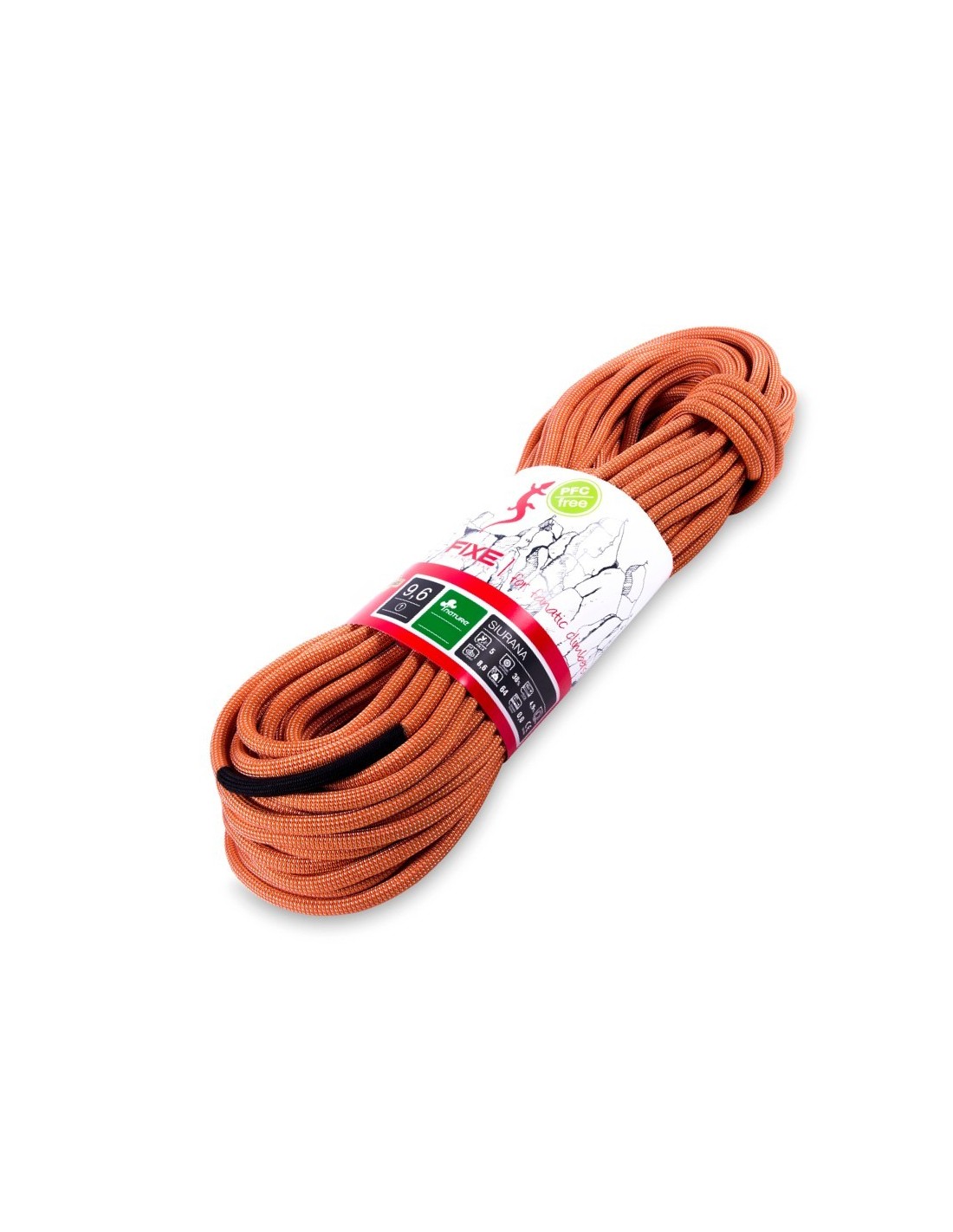 Cuerda modelo Siurana de 60m y 9,6 mm de diámetro de la marca Fixe-Roca. Cuerda simple con tacto agradable y de fácil anudabilidad. Duradera, resistente y con una fuerza de impacto muy baja. Es una cuerda muy cómoda de usar.