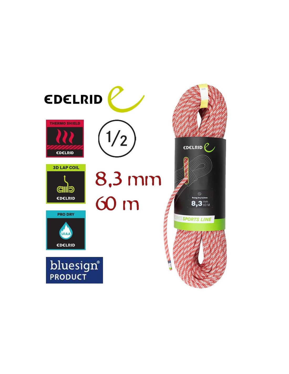 CUERDA DOBLE ROSEG DRY 8,3mm 60 M (ROJA) - EDELRID