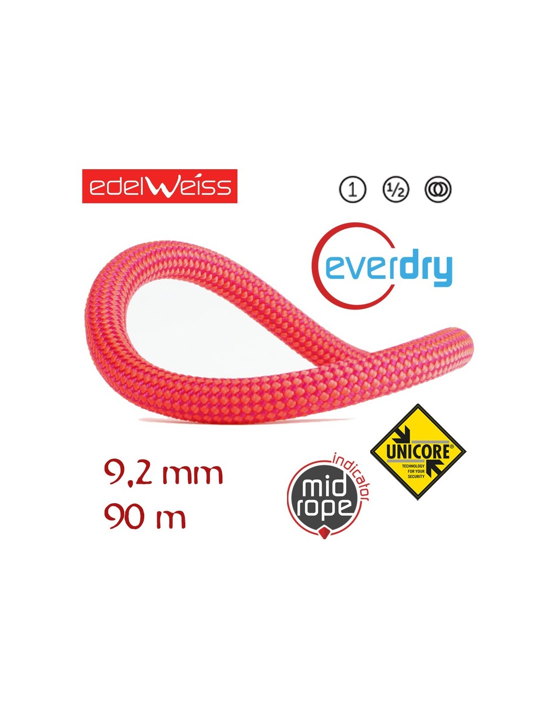 CUERDA TRIPLE HOMOLOGACIÓN PERFORMANCE 9,2 UNICORE EVERDRY 90 M (ROSA) - EDELWEISS
