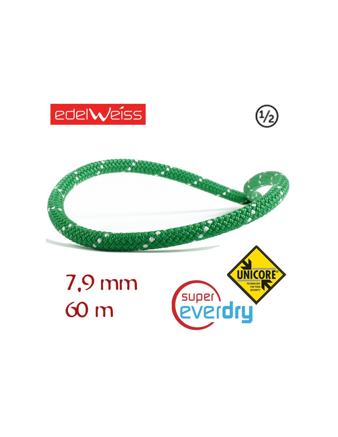 CUERDA MEDIA M ELITE 7,9 MM SPIRIT UNICORE SUPEREVERDRY 60 M (VERDE) - EDELWEISS