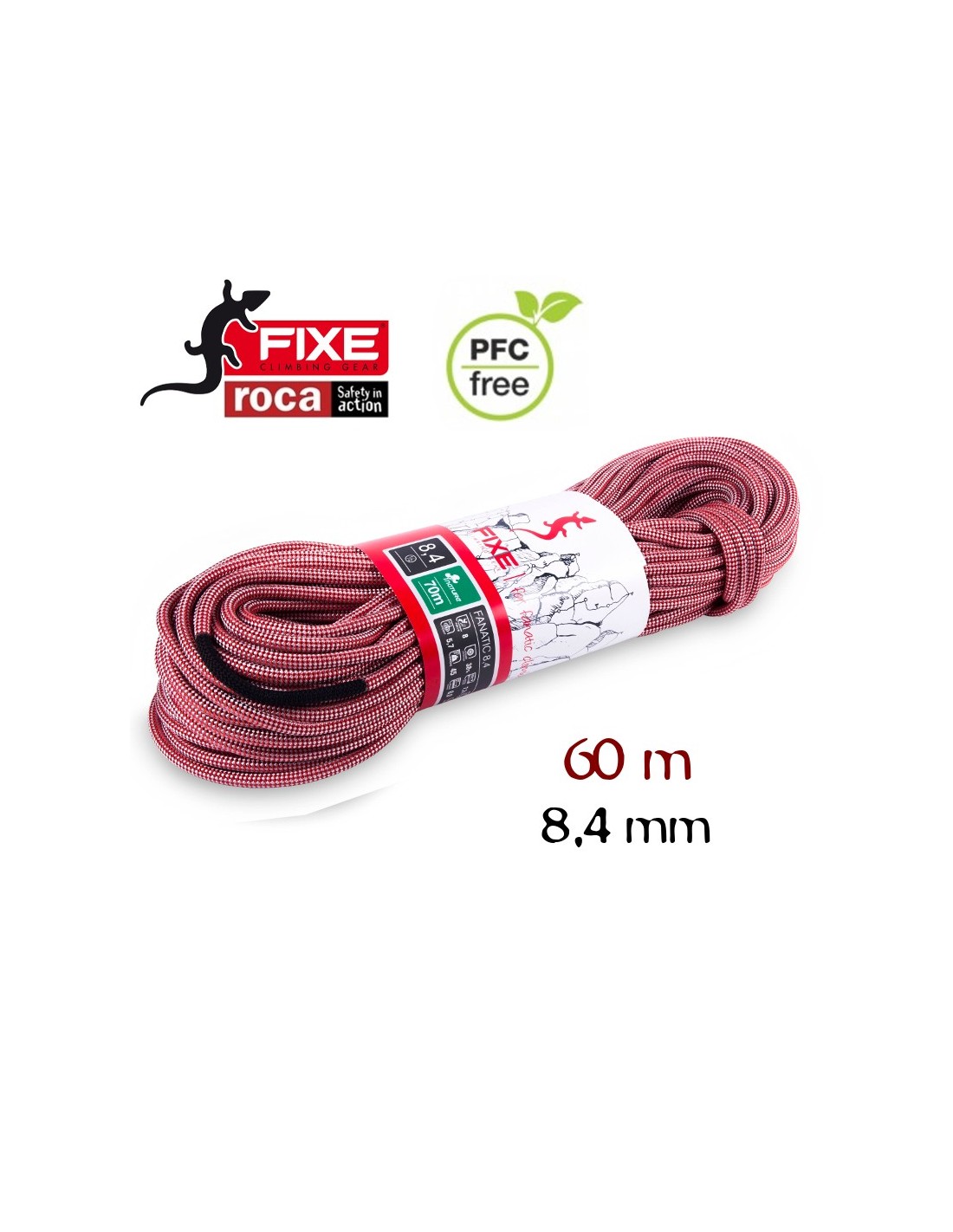 La cuerda Fanatic de Roca es una cuerda de 8,4 mm de 60 m de construcción clásica y sin tratamientos.