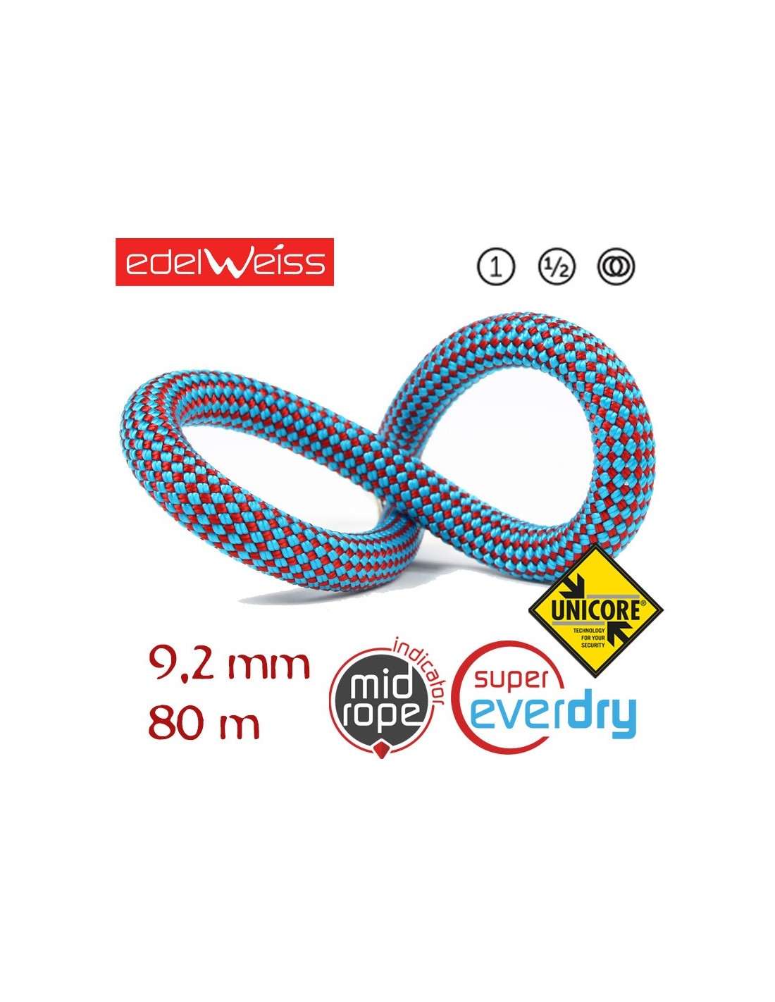 CUERDA TRIPLE HOMOLOGACIÓN PERFORMANCE 9,2 UNICORE SUPEREVERDRY 80 M (AZUL) - EDELWEISS
