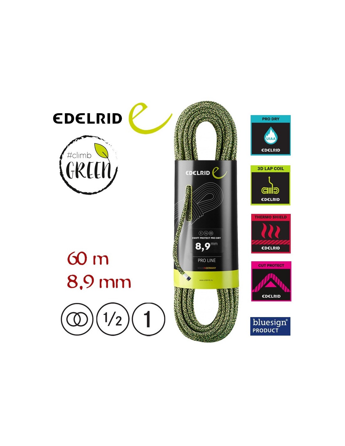 CUERDA TRIPLE HOMOLOGACIÓN SWIFT PROTECT DRY 8,9 MM (60) - EDELRID