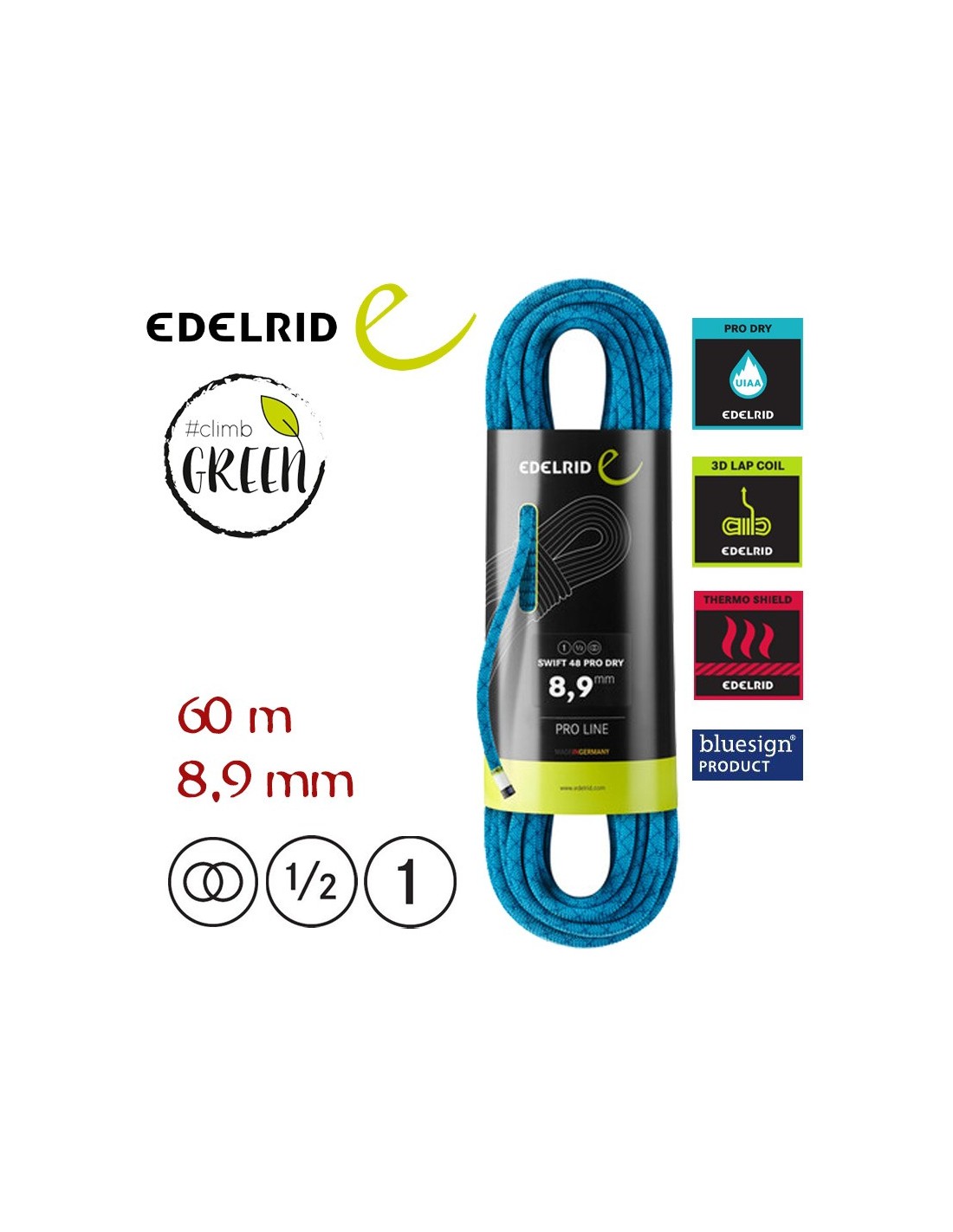 CUERDA TRIPLE HOMOLOGACIÓN SWIFT 48 PRO DRY 8,9 mm 60 M (ICEMINT) - EDELRID