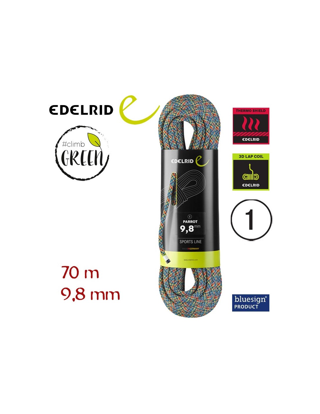 CUERDA SIMPLE DE PRODUCCIÓN SOSTENIBLE PARROT 9,8 MM 70M - EDELRID