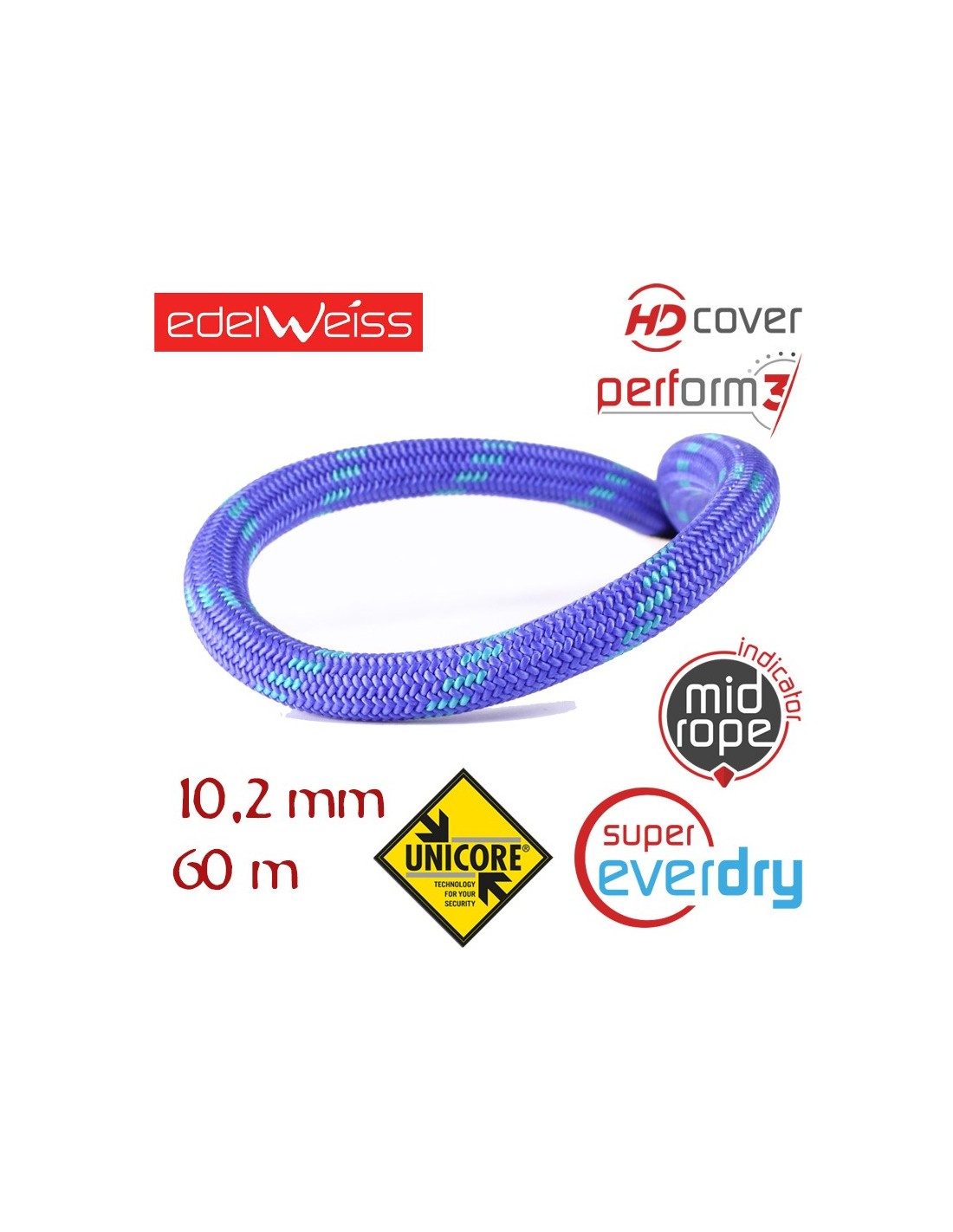 - Perform 3: Gracias a una larga experiencia en la fabricación y desarrollo de productos dedicados a la verticalidad, EDELWEISS presenta Perform 3, una nueva generación de cuerdas, fiel a nuestra reputación de durabilidad y confiabilidad, más liviana y de mejor manejo, con aún más absorción de impactos. Este es el resultado de un desarrollo dedicado en el material, su tratamiento y en la construcción misma de la cuerda.